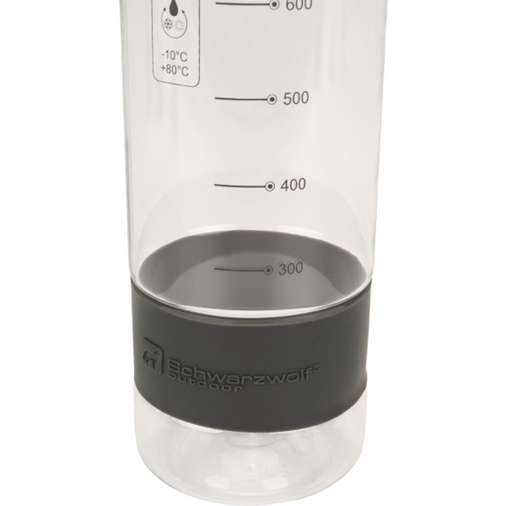 Sportowa butelka Schwarzwolf wykonana z Tritanu o gumowej powierzchni. Nie zawiera BPA. Odpowiednia do zimnych i ciepłych napojów od 10ºC do 90ºC. Na dolnej części butelki znajduje się silikonowy pasek z logo Schwarzwolf. Pakowana w pudełko Schwarzwolf.
