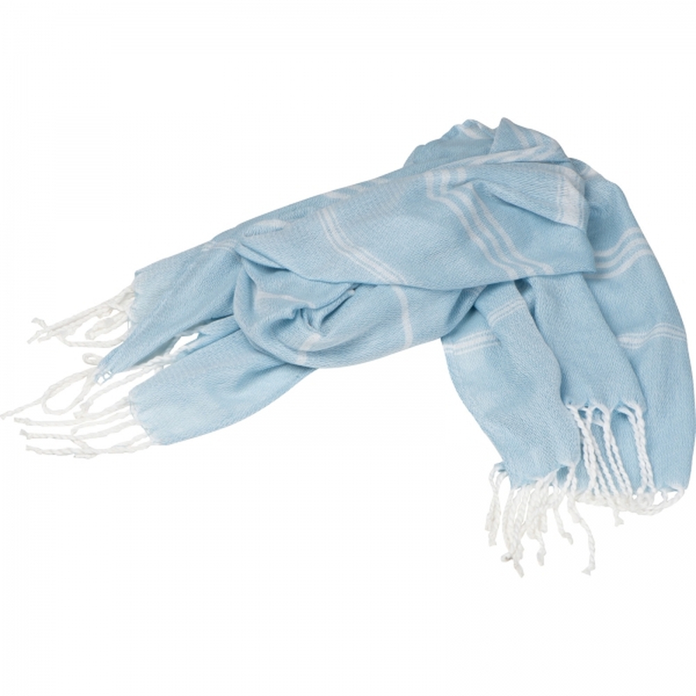 Pareo plażowe lub ręcznik kąpielowy wykonany z poliestru i bawełny z frędzlami. Niezbędny podczas każdej wizyty na plaży lub basenie.