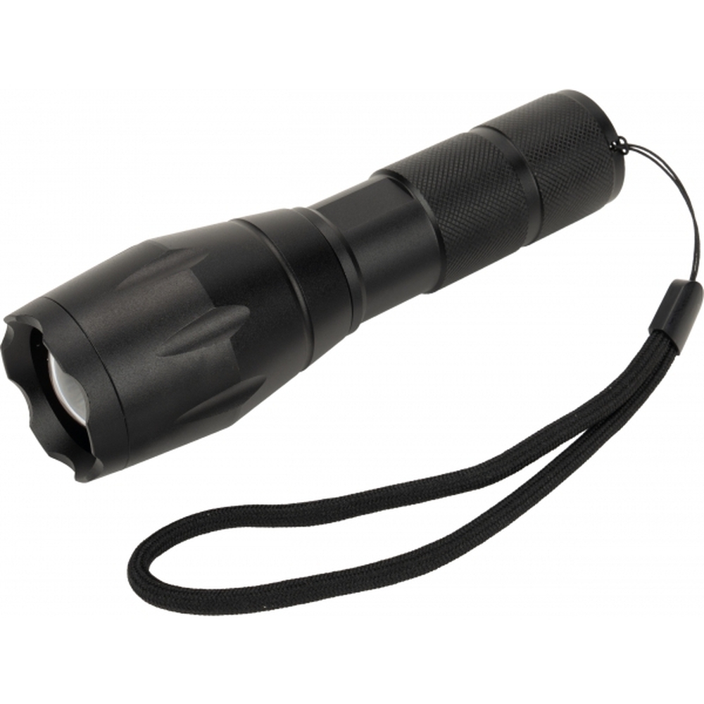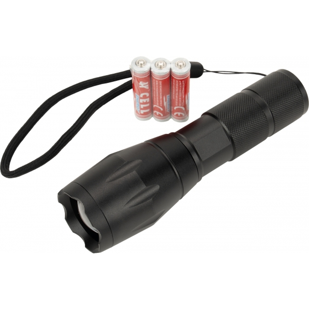 Latarka marki Schwarzwolf z paskiem na nadgarstek. Jasność: 260 lumenów. Baterie 3 x AAA w zestawie.