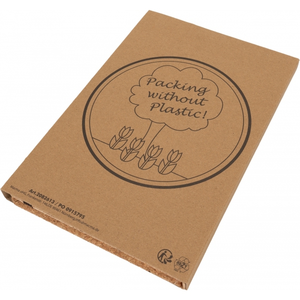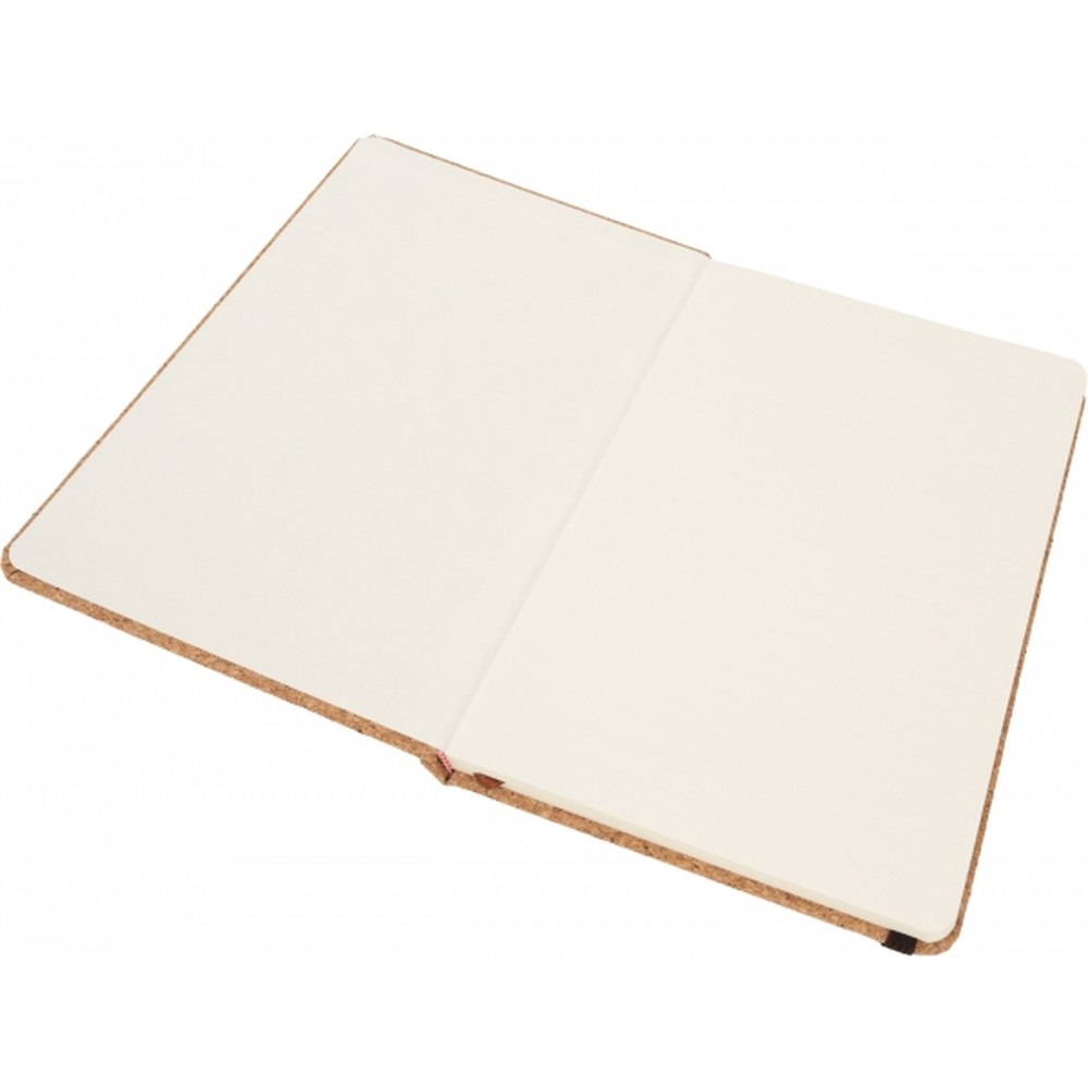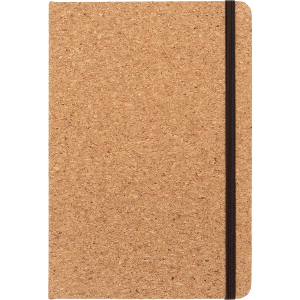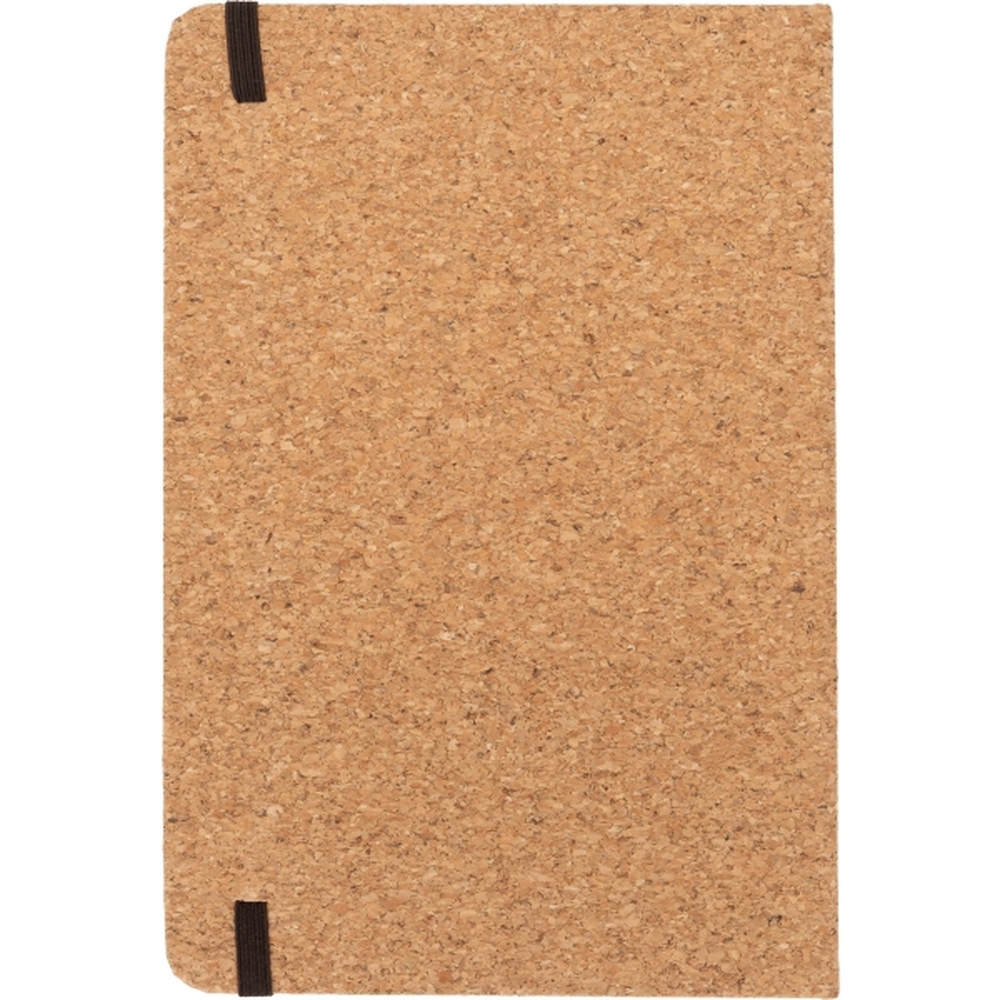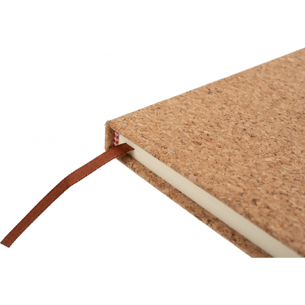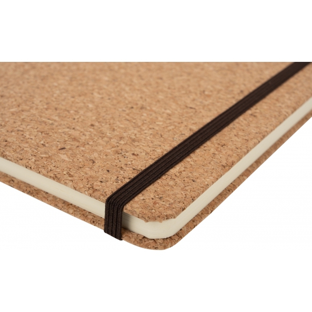 Notes format A5 (160 stron w linie) z okładką wykonaną z korka oraz zakładką i gumką do zamykania.