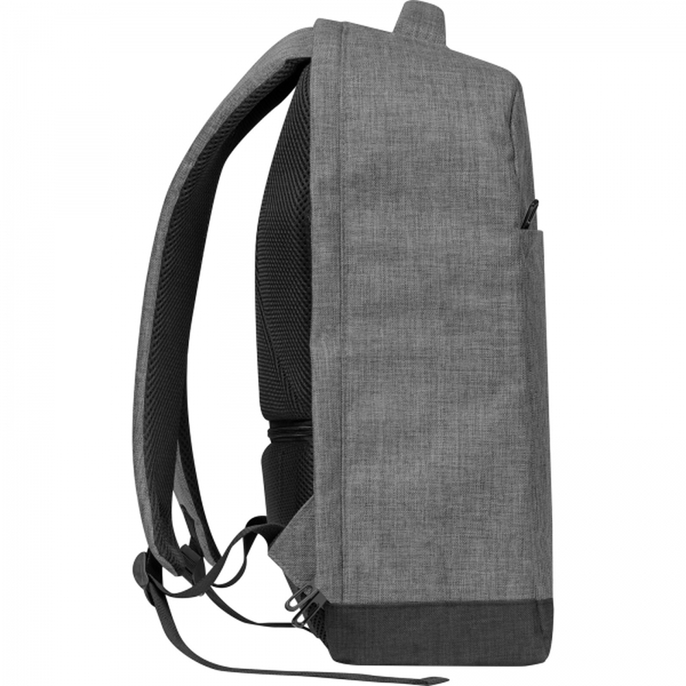 Plecak wykonany z poliestru 600D z wyjściem na kabel USB, przegrodą na laptopa, wyściełanymi, oddychającymi szelkami i przednią przegrodą antykradzieżową.