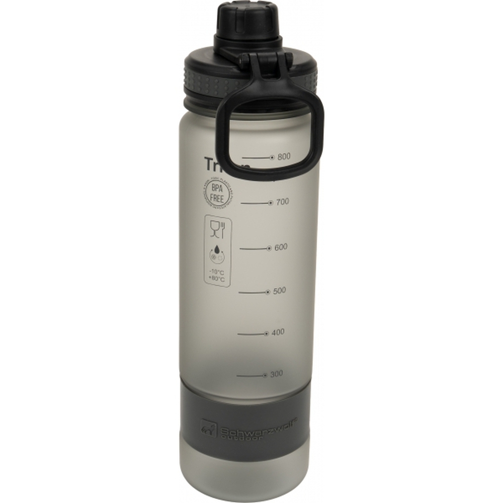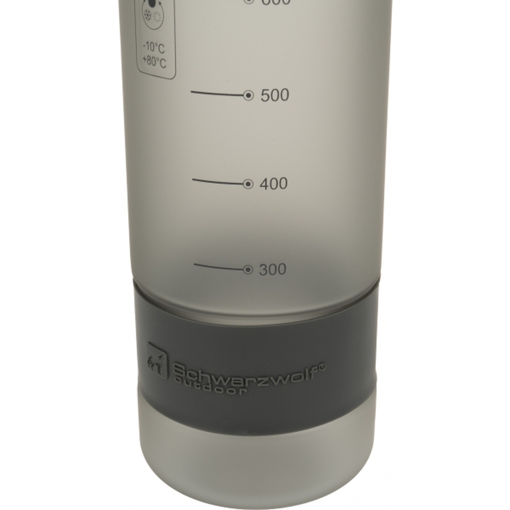 Sportowa butelka Schwarzwolf wykonana z Tritanu o gumowej powierzchni. Nie zawiera BPA. Odpowiednia do zimnych i ciepłych napojów od 10ºC do 90ºC. Na dolnej części butelki znajduje się silikonowy pasek z logo Schwarzwolf.