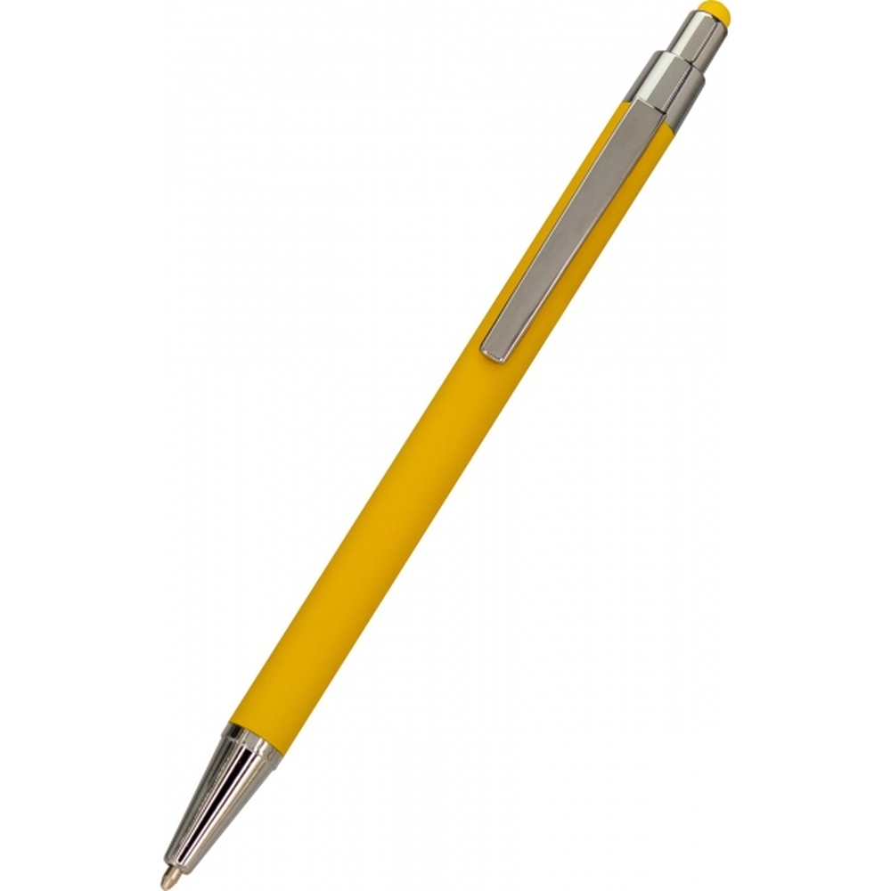 Długopis z aluminium z gumowaną powierzchnią. Posiada wkład piszący na niebiesko i końcówkę do obsługi ekranów dotykowych.