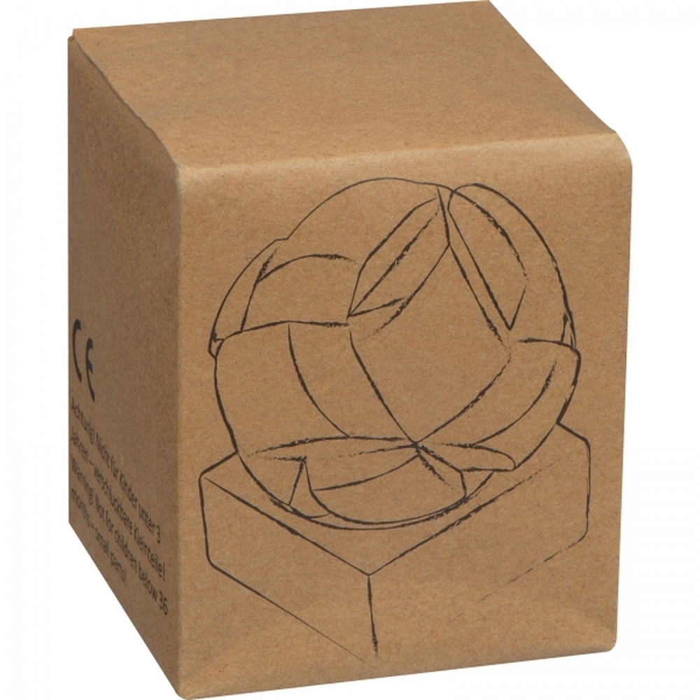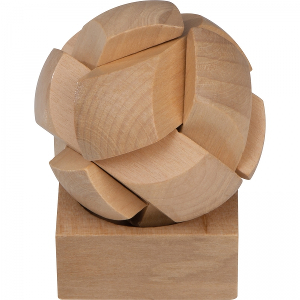 Puzzle przestrzenne wykonane z drewna. Składają się z 6 elementów, które należy połączyć tak, aby stworzyły kulę.