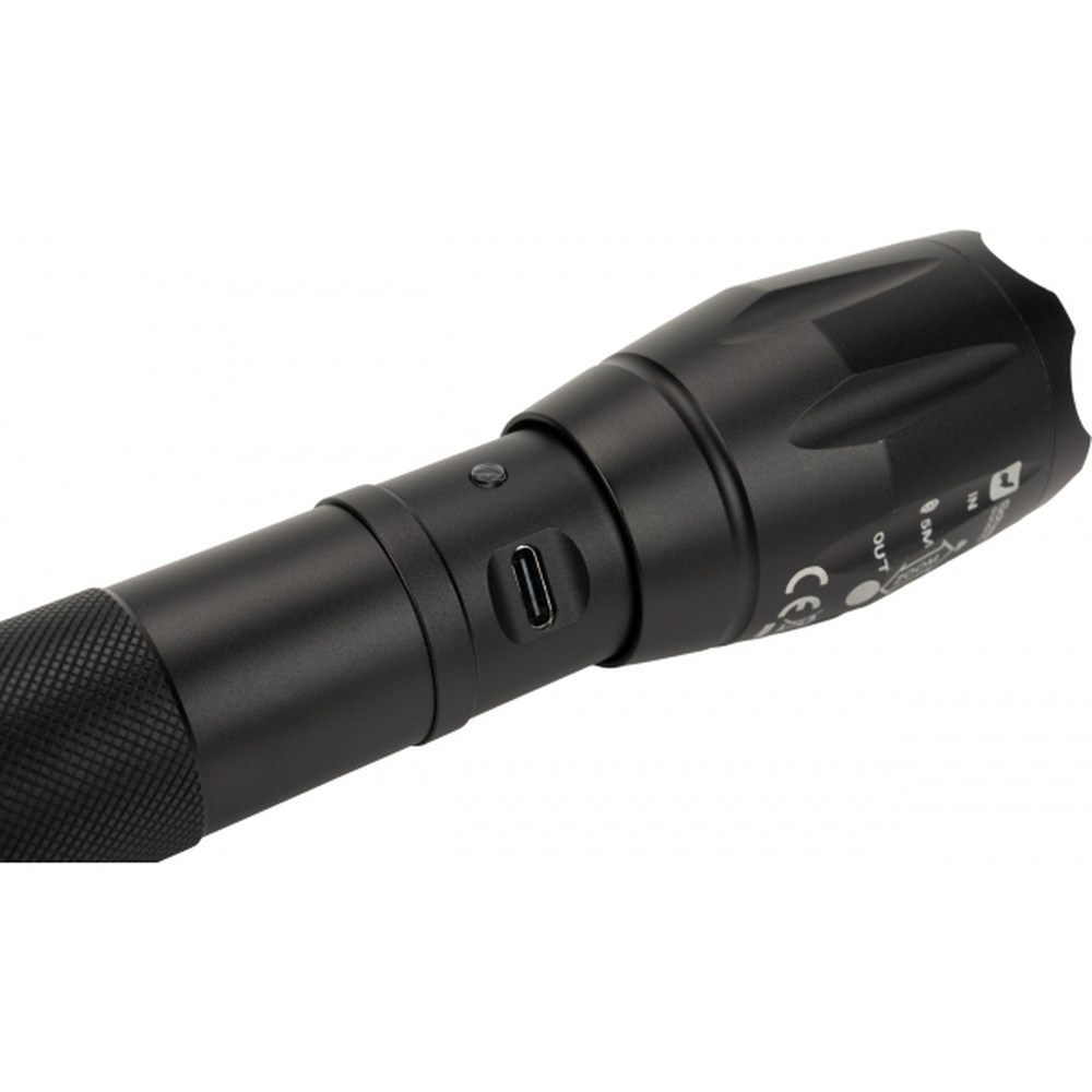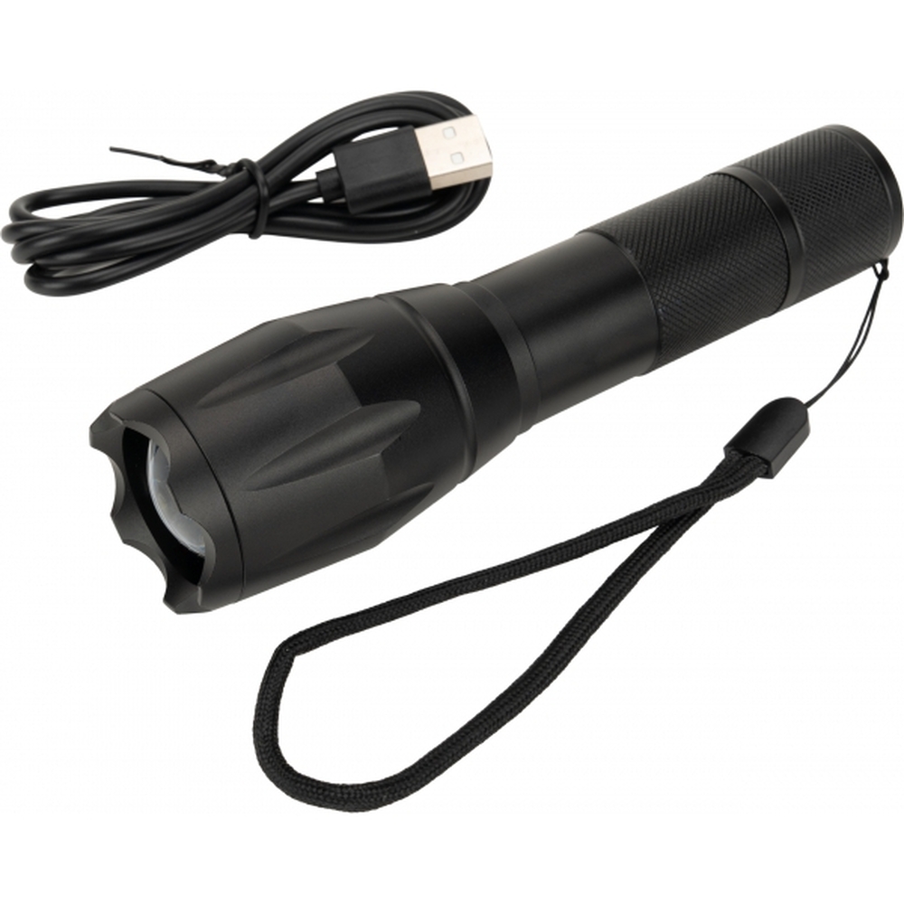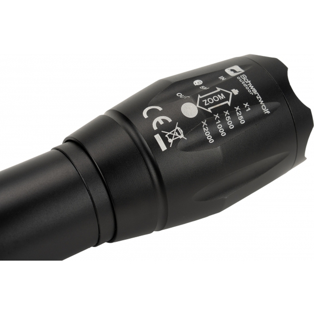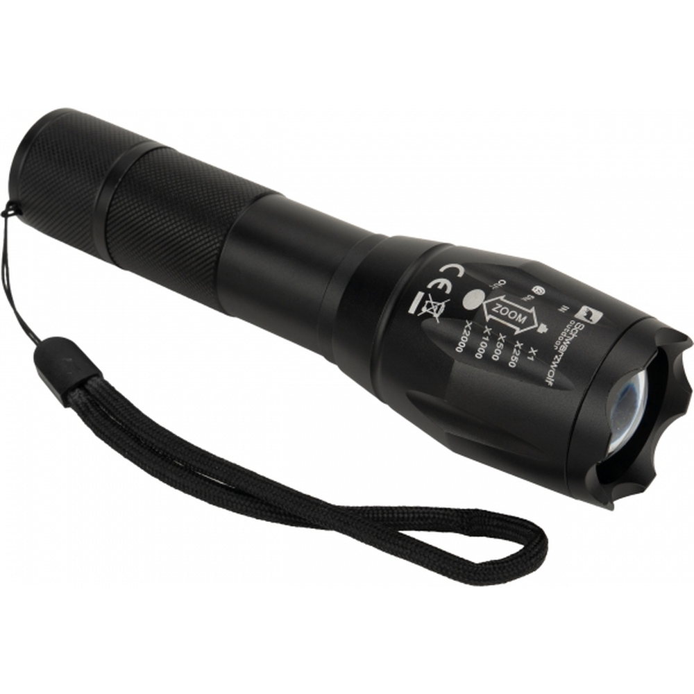 Latarka outdoorowa marki Schwarzwolf zakumulatorem do wielokrotnego ładowania i diodą CREE T6. Posiada pasek na nadgarstek i regulację ustawienia fokusa, a także 5 trybów mocy światła: słaby, średni, mocny, błyskowy i SOS. W zestaw wchodzi akumulatorek o mocy 2200 mAh i kabel micro USB. W latarce można zastosować także baterie 3AAA. Jasność: 270 lumenów