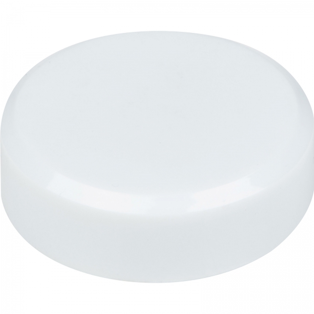 Magnes o średnicy 3 cm, wykonany z tworzywa sztucznego, zapewnia dużo miejsca na białej powierzchni do pełnego nadruku cyfrowego.