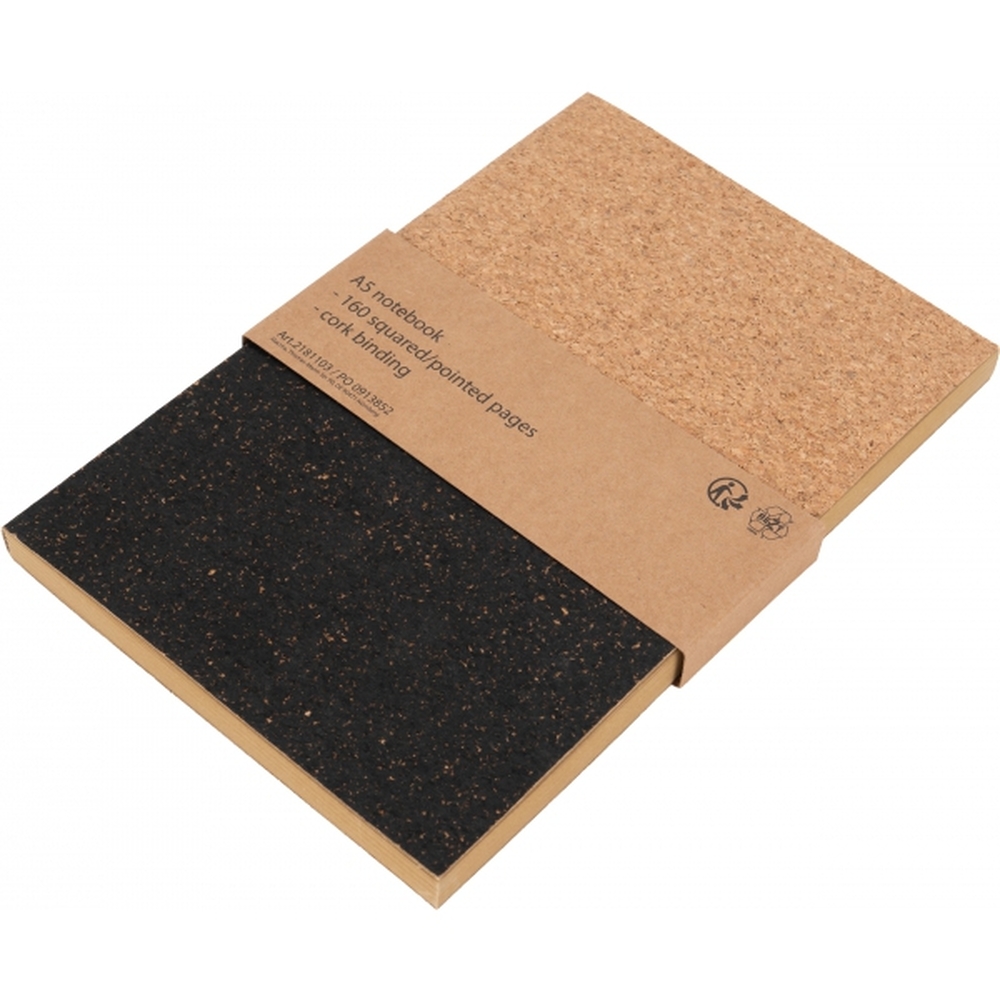 Notes o formacie A5 ze 160 stronami w kropki i okładką do połowy wykonaną z korka.