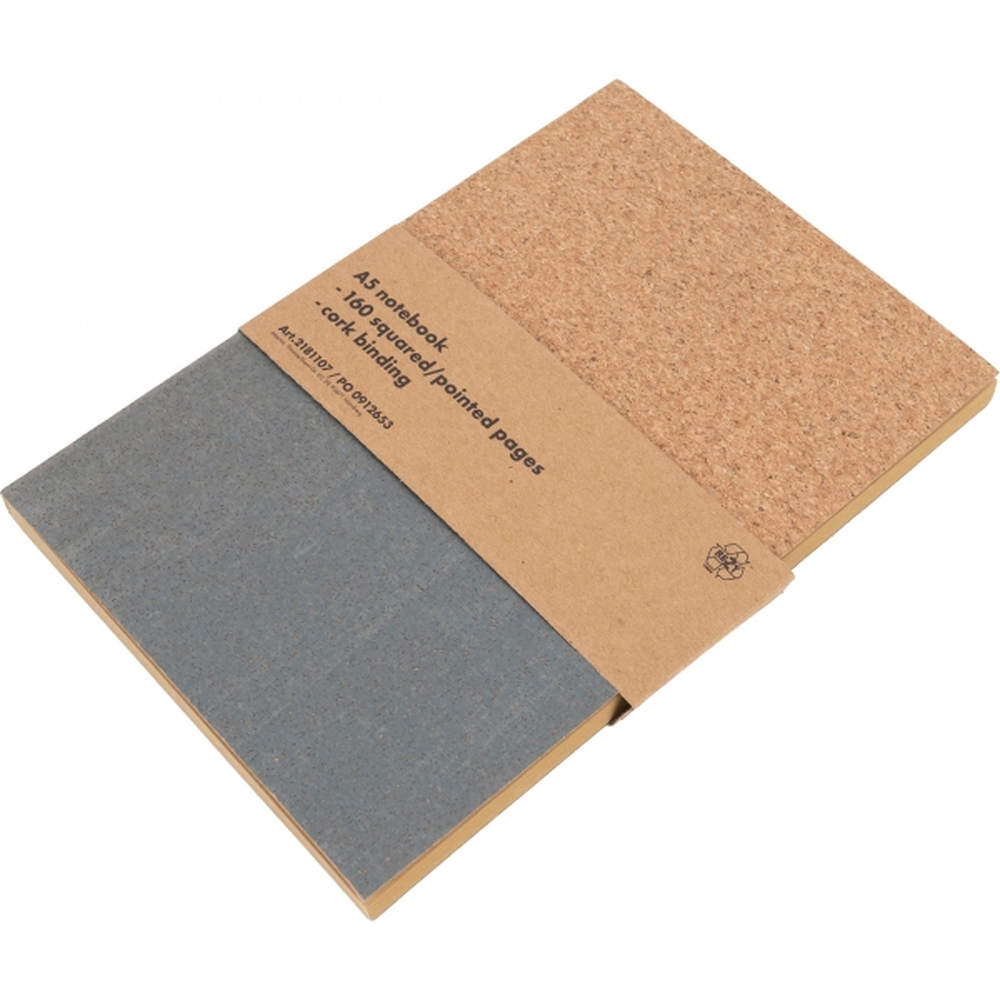 Notes o formacie A5 ze 160 stronami w kropki i okładką do połowy wykonaną z korka.