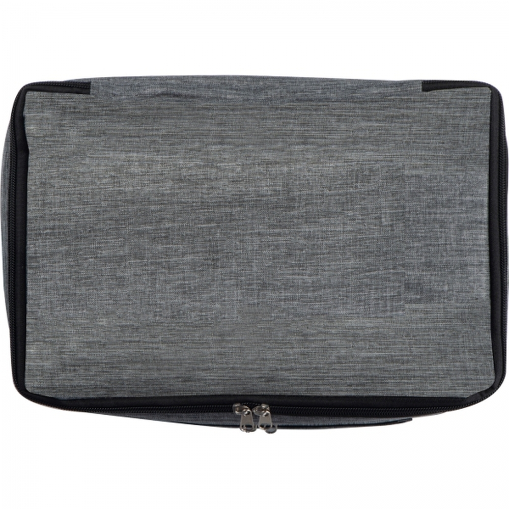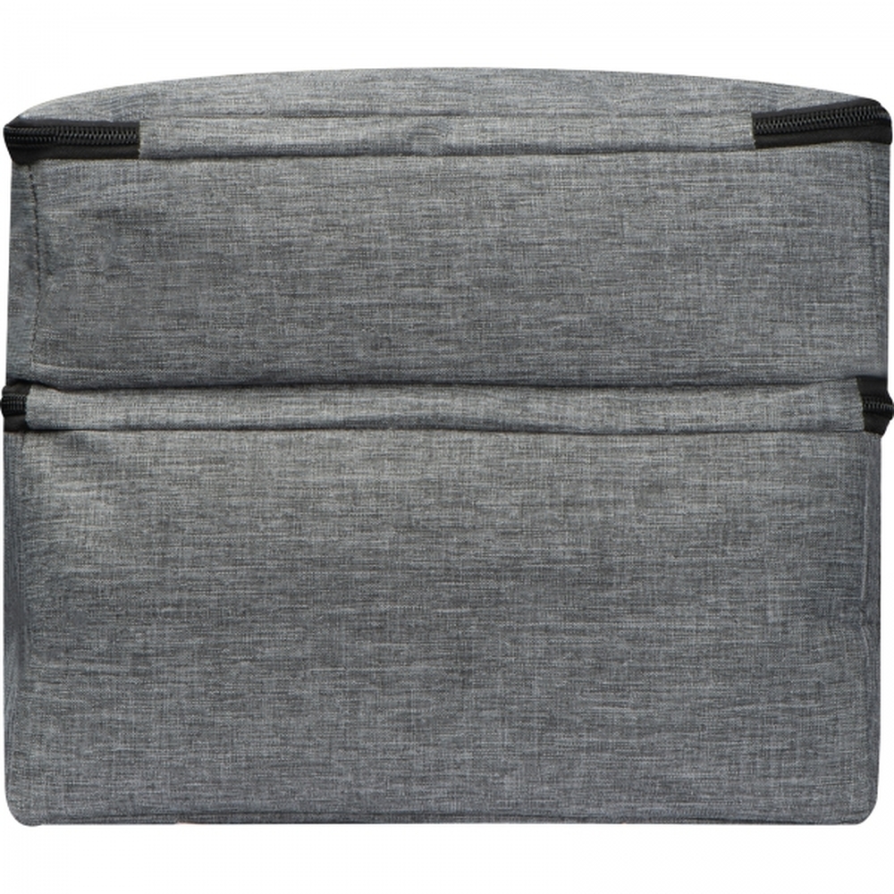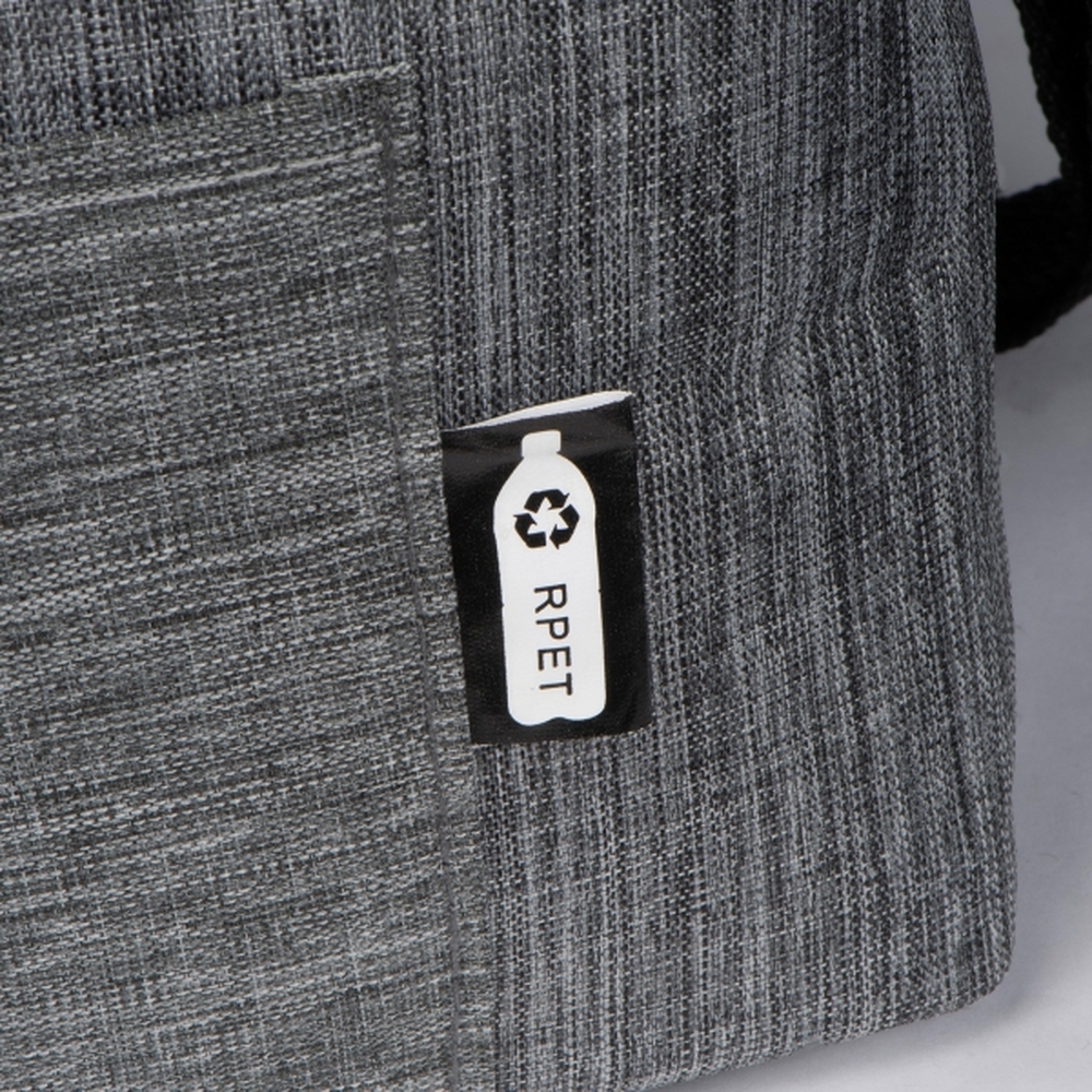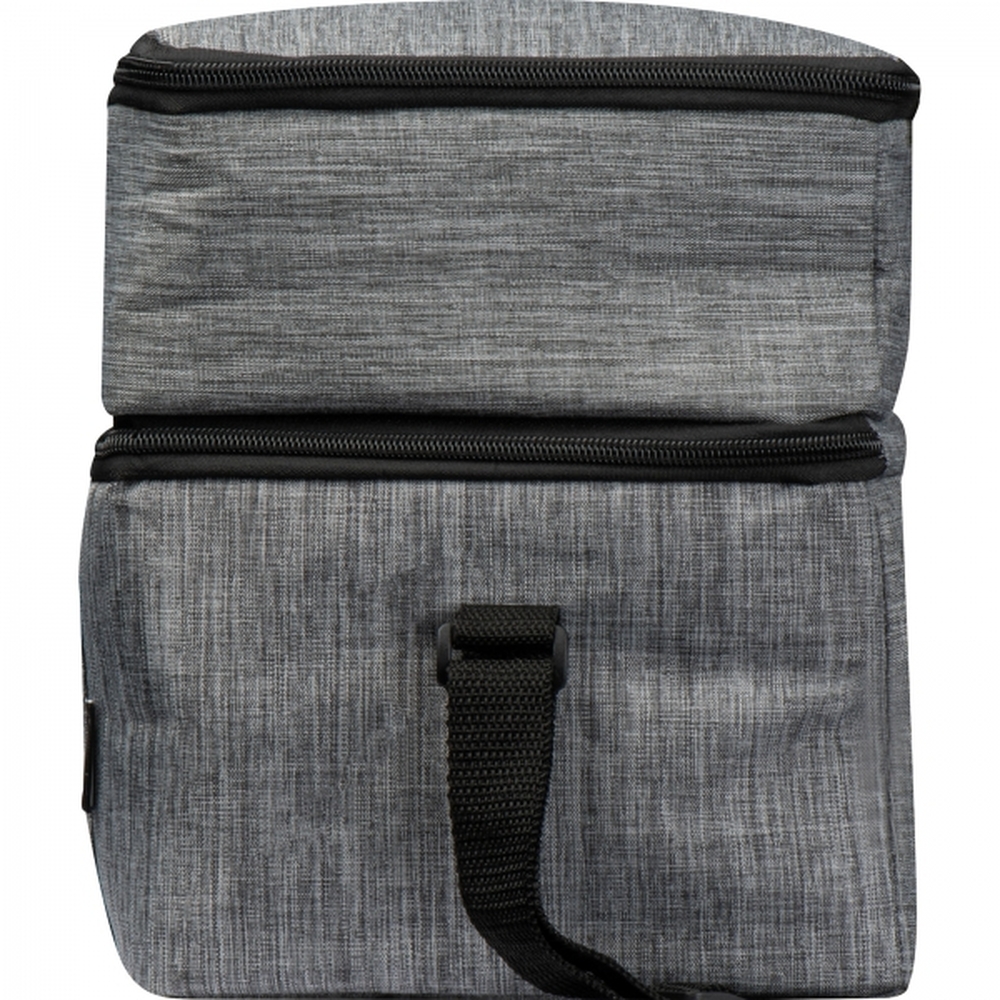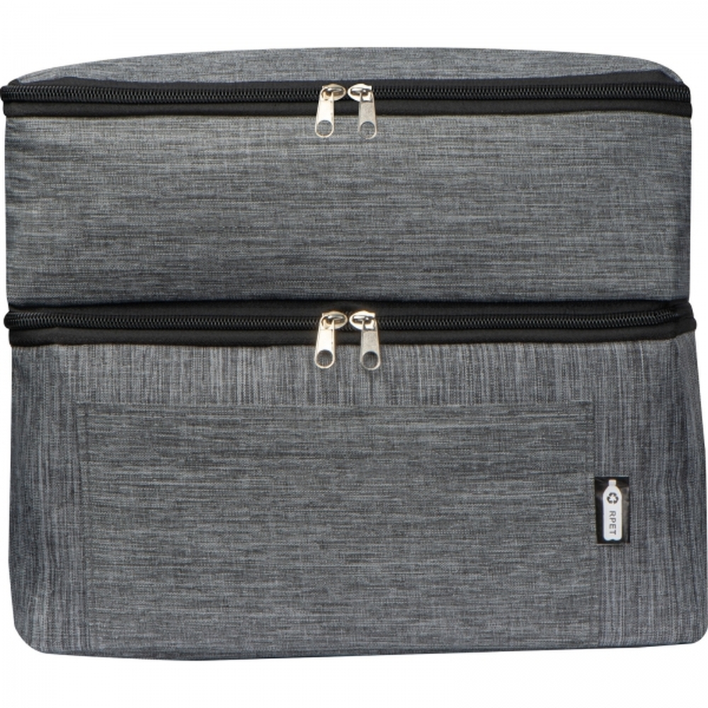 Torba termiczna wykonana z materiału RPET z dwoma chłodzącymi komorami i fronotwą kieszonką zamykaną na zamek. Torba została wyposażona w długi, regulowany pasek na ramie, ułatwiający przenoszenie.