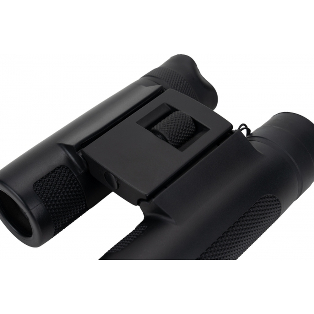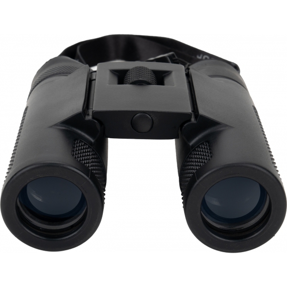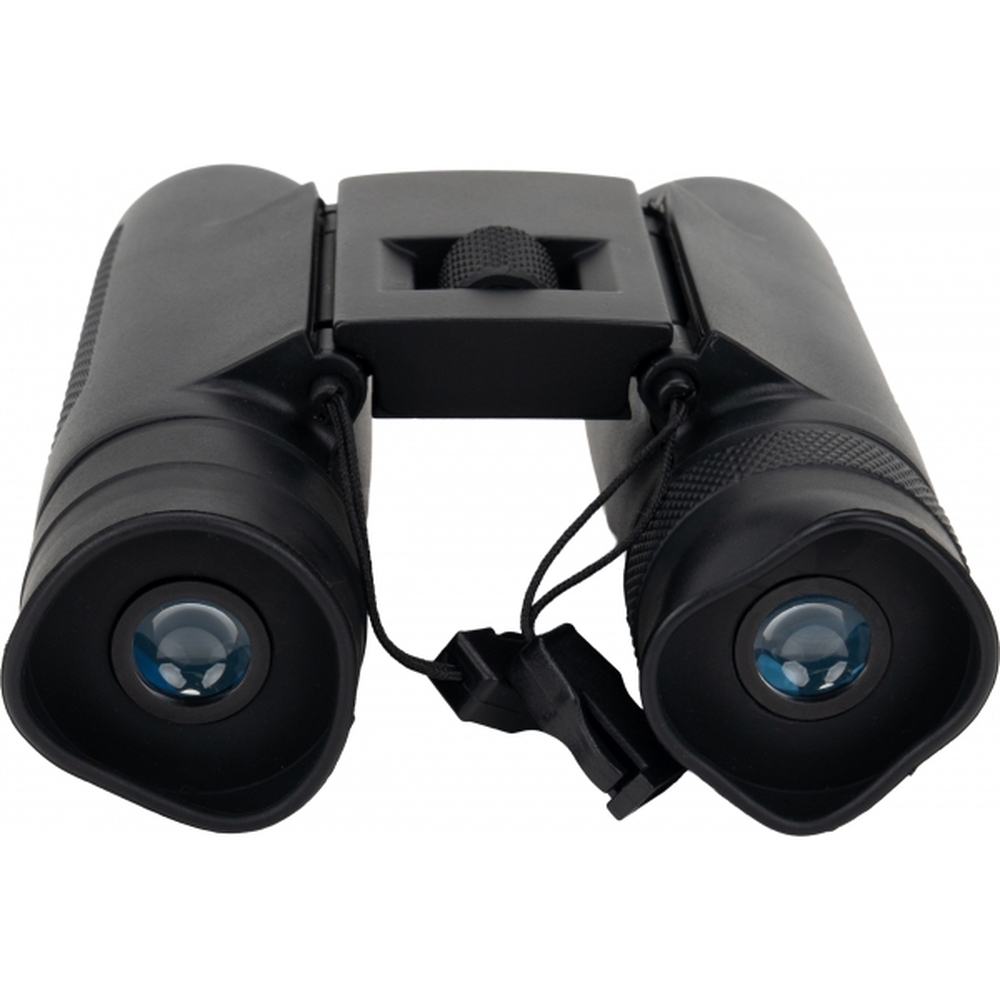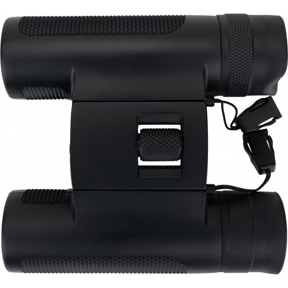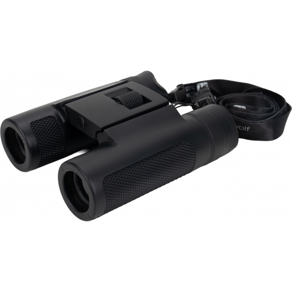 Lornetka Schwarzwolf o powiększeniu 10x i średnicy obiektywu 25mm, pole widzenia na 1000 m: 101 m, kąt widzenia 5,8°, średnia źrenica wyjściowa to 11 mm, minimalna odległość ostrzenia to 3 m. Lornetka zapakowana w neoprenowy futerał z paskiem na szyję.