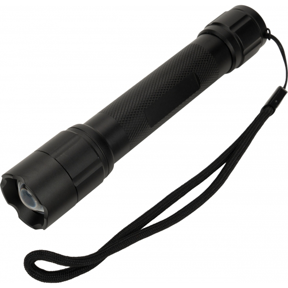 Latarka Outdoorowa Schwarzwolf z paskiem na nadgarstek. Zawiera diodę Osram LED o mocy 5W. Możliwość zmiany powiększenia. Posiada 3 tryby świecenia: mocne, średnie i migające. W zestawie dołączone są baterie 2 × AA.