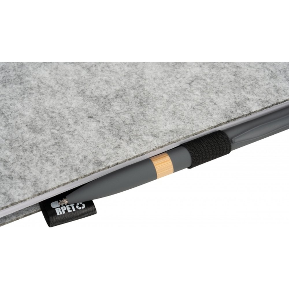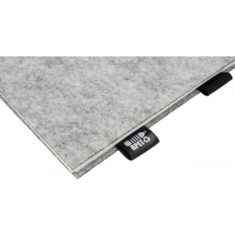 Notes wykonany z filcu RPET, o formacie A5 z 160 stronami w linie. Notes posiada spiralną oprawę i pętelkę na długopis.
