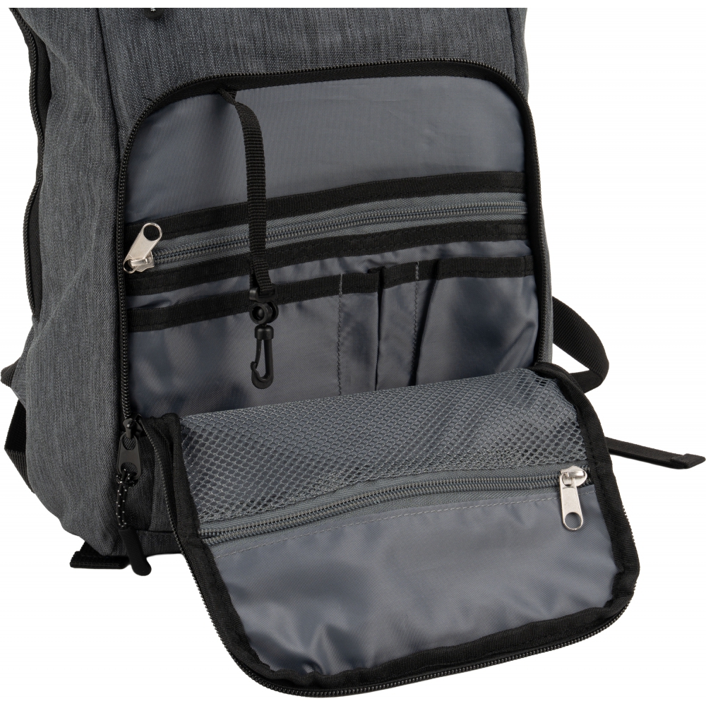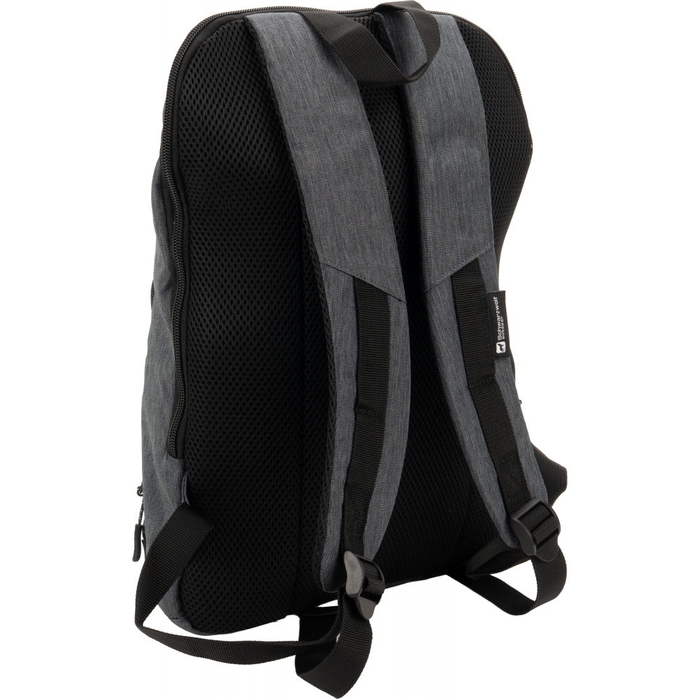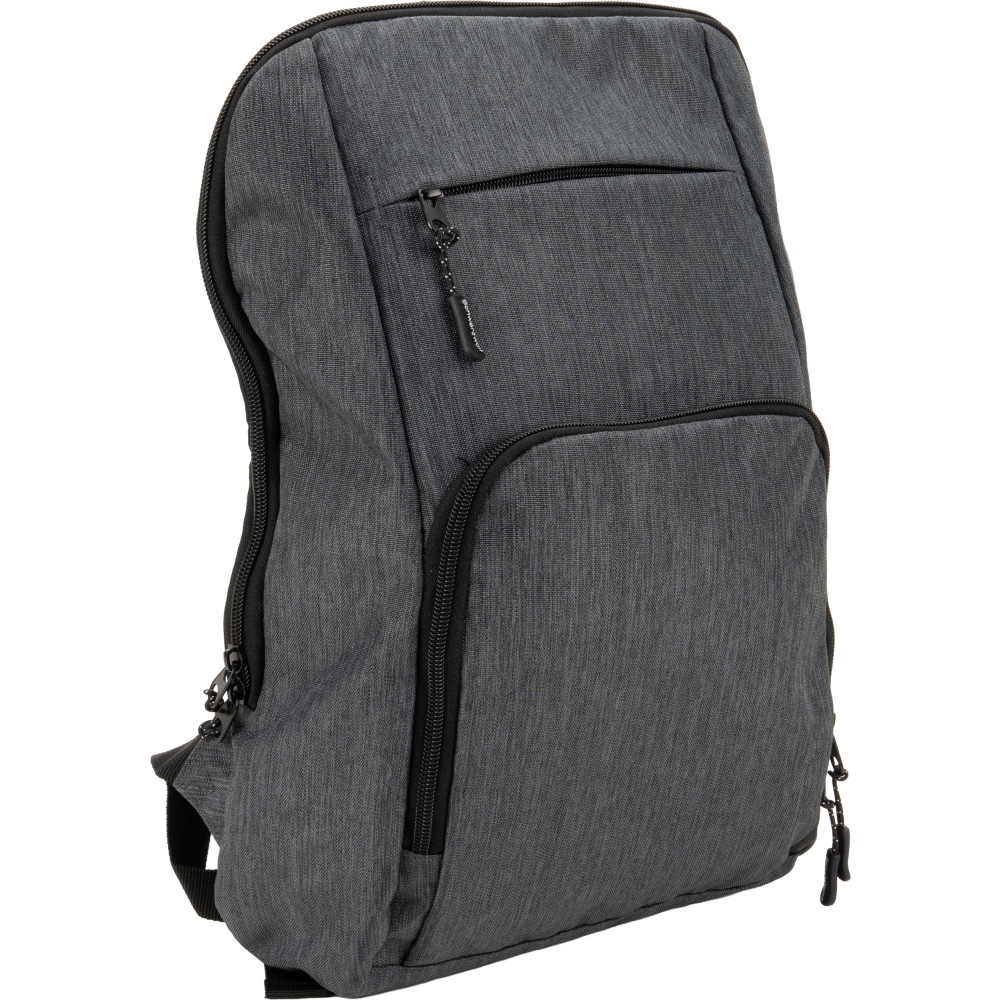 Lekki i kompaktowy plecak wyposażony w dużą komorę główną z wyściełaną przegródką na laptopa, małą kieszonkę z przodu, zamykaną na zamek oraz dużą kieszeń z wieloma przegródkami (małą kieszonką, kieszonką z siatki, karabińczykiem oraz organizerem na długopisy i dokumenty). Pojemność: 15l.