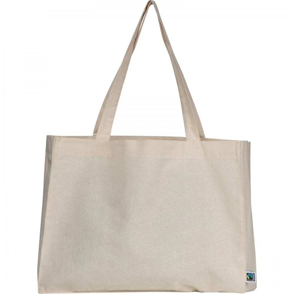 Torba z długimi uszami, wykonana z bawełny organicznej Fair Trade, o gramaturze 180 g/m², z szerokim dnem.