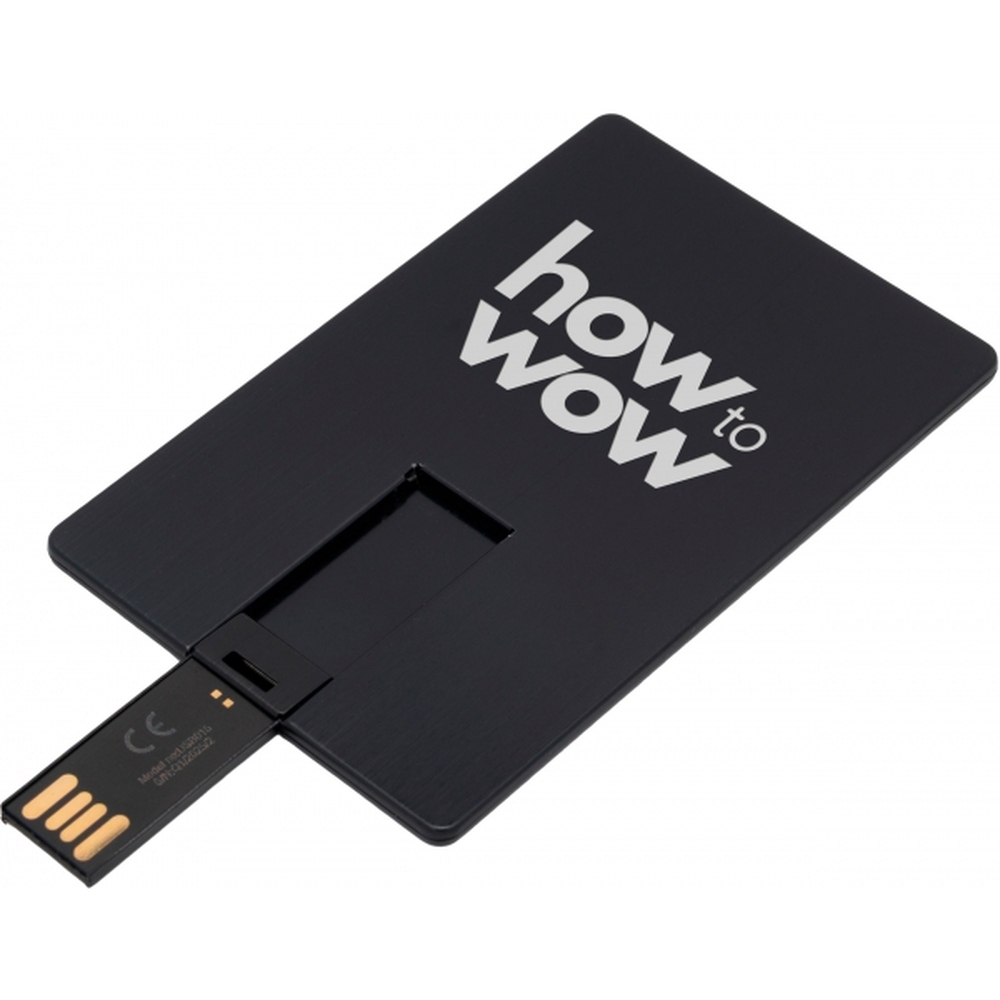 Pamięć USB w kształcie karty kredytowej, wykonana z metalu. Możliwość wyboru pojemności, smyczki i opakowania. Opcja wgrania danych.Typ 2.0 – prędkość zapisu: 6–8 m/s, prędkość odczytu: 18–20 MB/s.