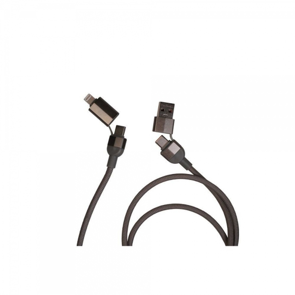 Magnetyczny kabel do szybkiego ładowania i transmisji danych Pierre Cardin o mocy 100 W. Kabel wykonany jest z aluminium, w oplocie nylonowym, pozostaje zawsze starannie zwinięty dzięki magnesowi. Złącza: wejście USB-A, USB-C; wyjście USB-C, Lightning. Długość kabla wynosi 100 cm. Zapakowany w pudełko upominkowe, posiada certyfikat autentyczności.