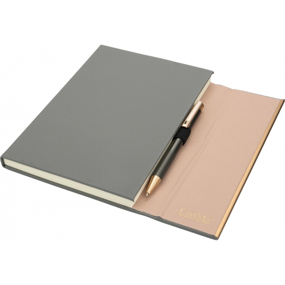 Notatnik A5 ze skóry z recyklingu, w linie z długopisem metalowym CrisMa MAGGIE