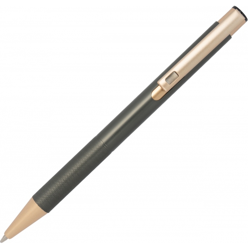 Zestaw, składający się z notesu z 96 kartkami w linie, w oprawie ze skóry pochodzącej z recyklingu i dopasowanego kolorystycznie długopisu.