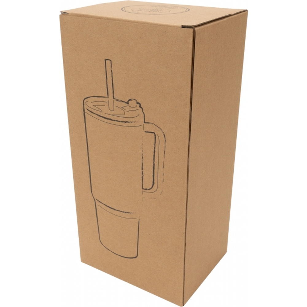 Kubek XXL, o pojemności 1200 ml, z podwójnymi ściankami, uchwytem do przenoszenia i słomką do picia.