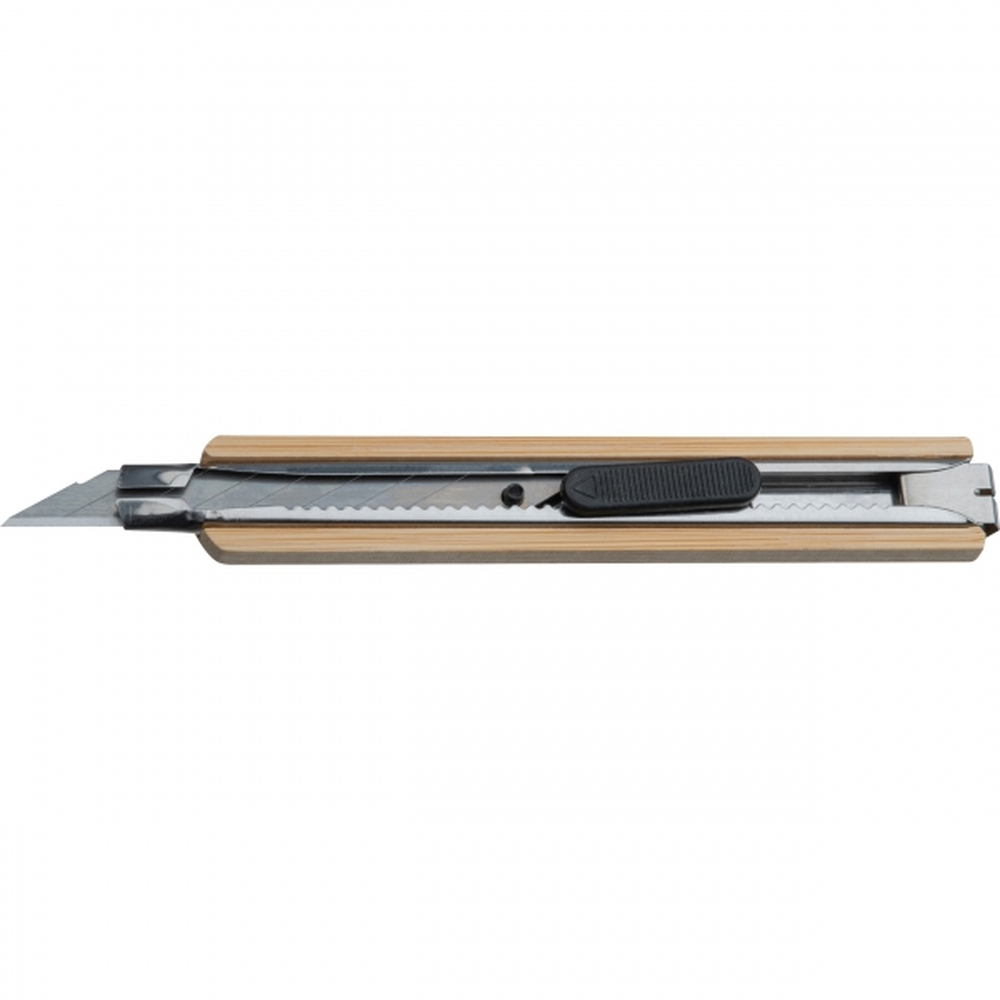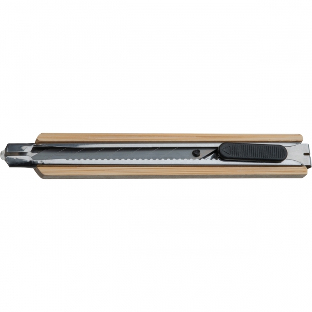 Nóż do kartonu z łamanym ostrzem, w bambusowej obudowie.