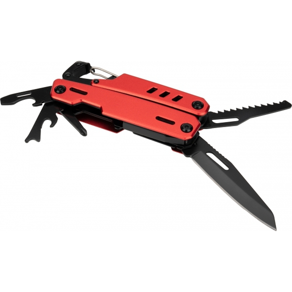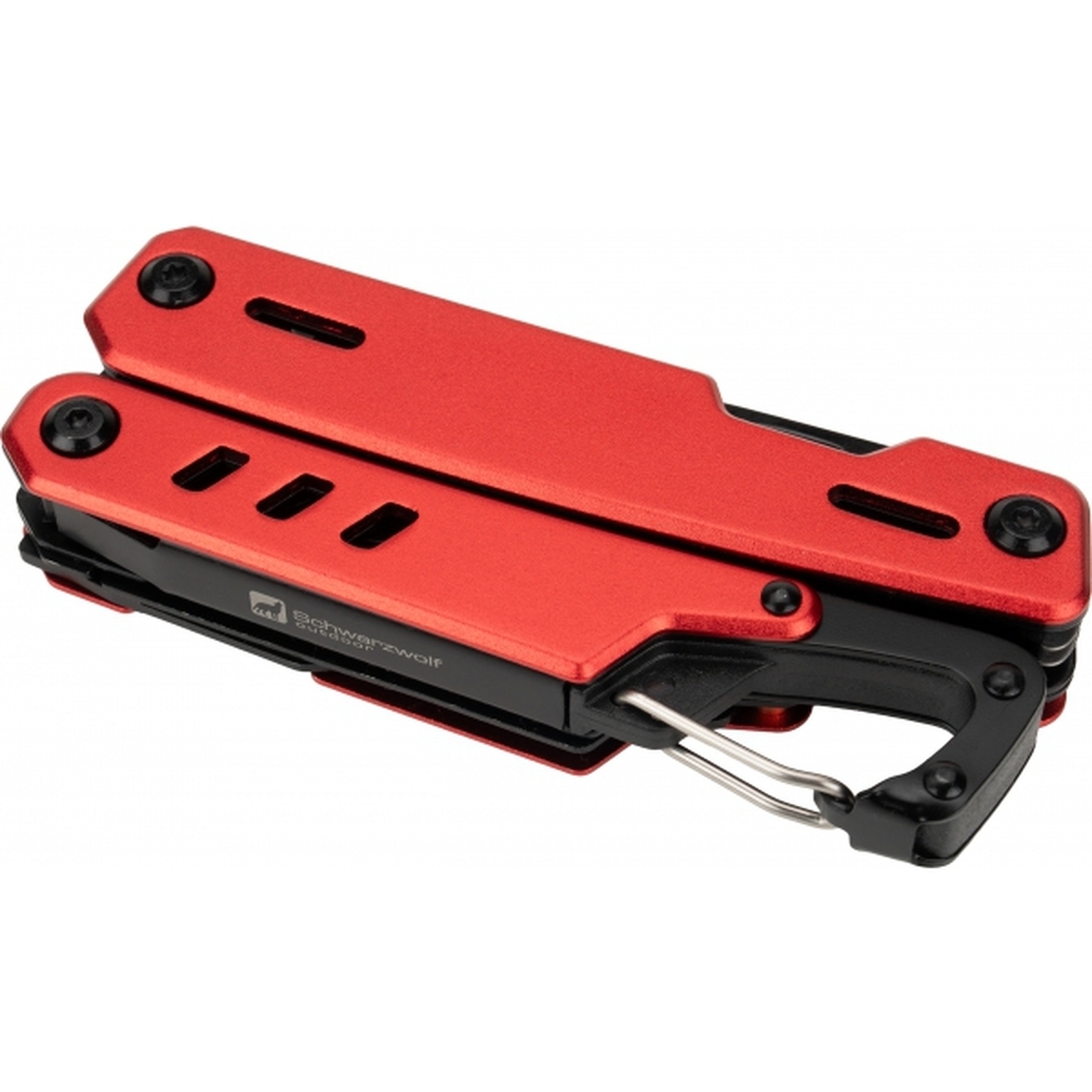 Multi-narzędzie Schwarzwolf zawiera 11 rodzajów narzędzi - nóż, otwieracz do piwa, otwieracz do puszek, szczypce, łuparka, piła, śrubokręt, śrubokręt krzyżakowy, pilnik, ściągacz izolacji. Zestaw narzędzi posiada karabińczyk i jest zapakowany w etui z neoprenu.