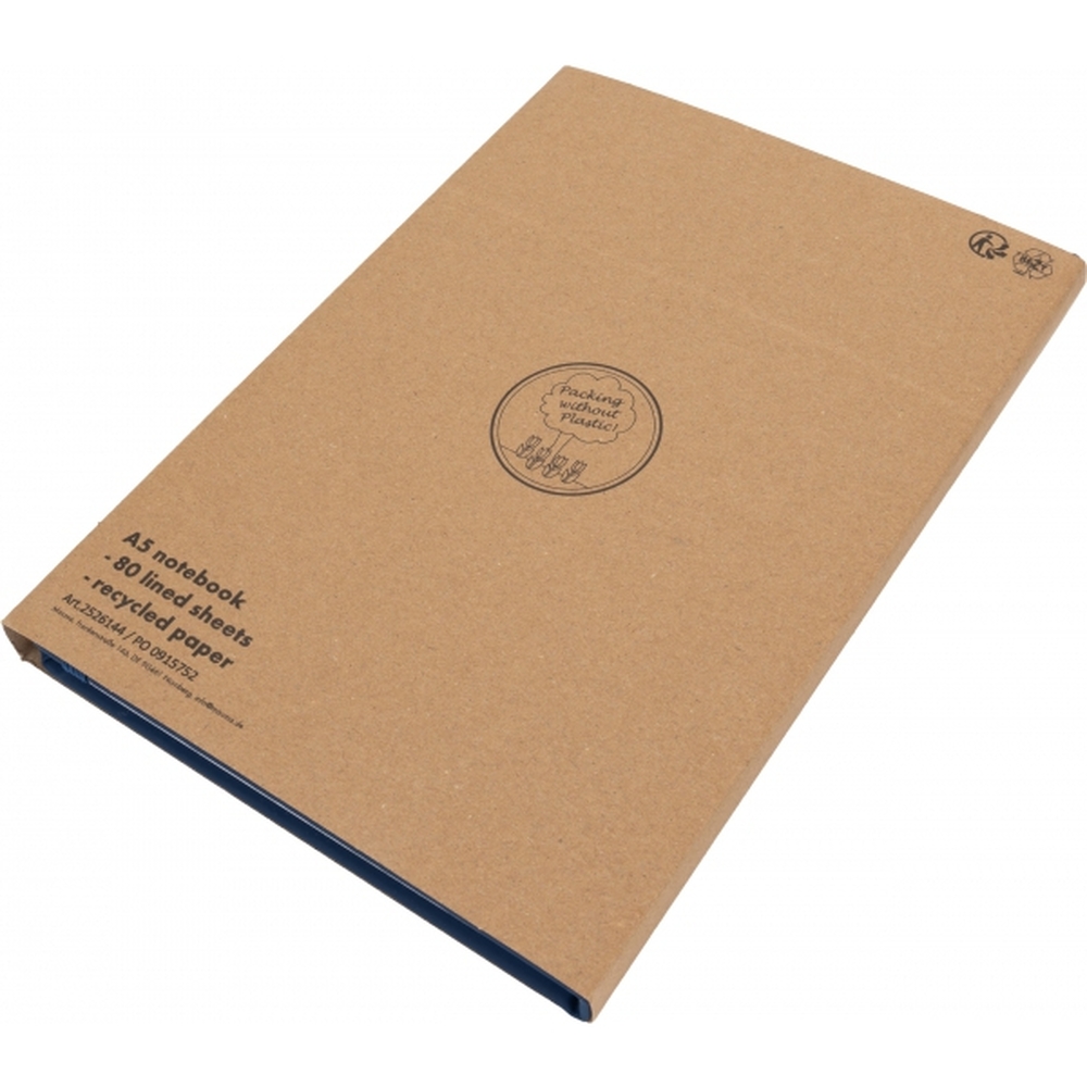 Notes A5, z 80 kartkami w linie, okładka i papier wykonane zostały z materiałów pochodzących z recyklingu.