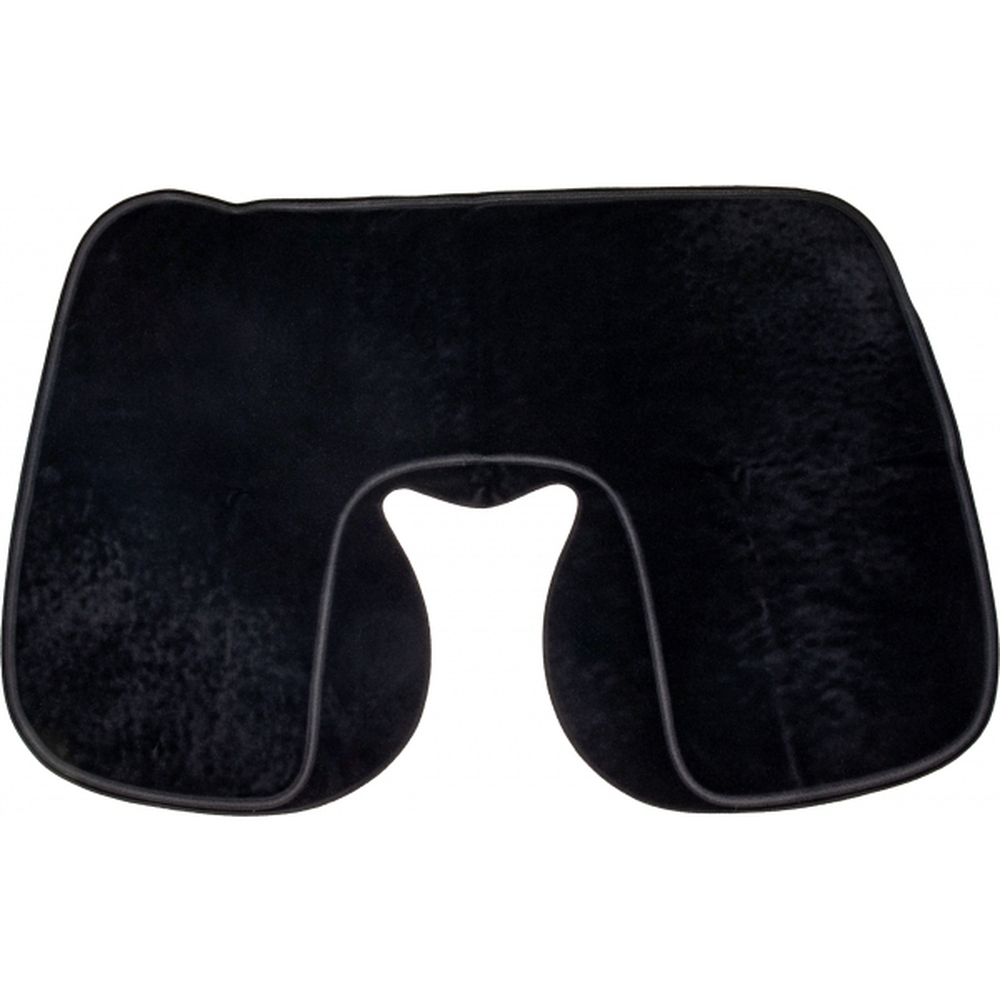 Welurowa, dmuchana poduszka podróżna o ergonomicznym kształcie. Wymiary na płasko: 41,5 x 26,5 cm, wymiary po napompowaniu: 34 x 25 x 10 cm.