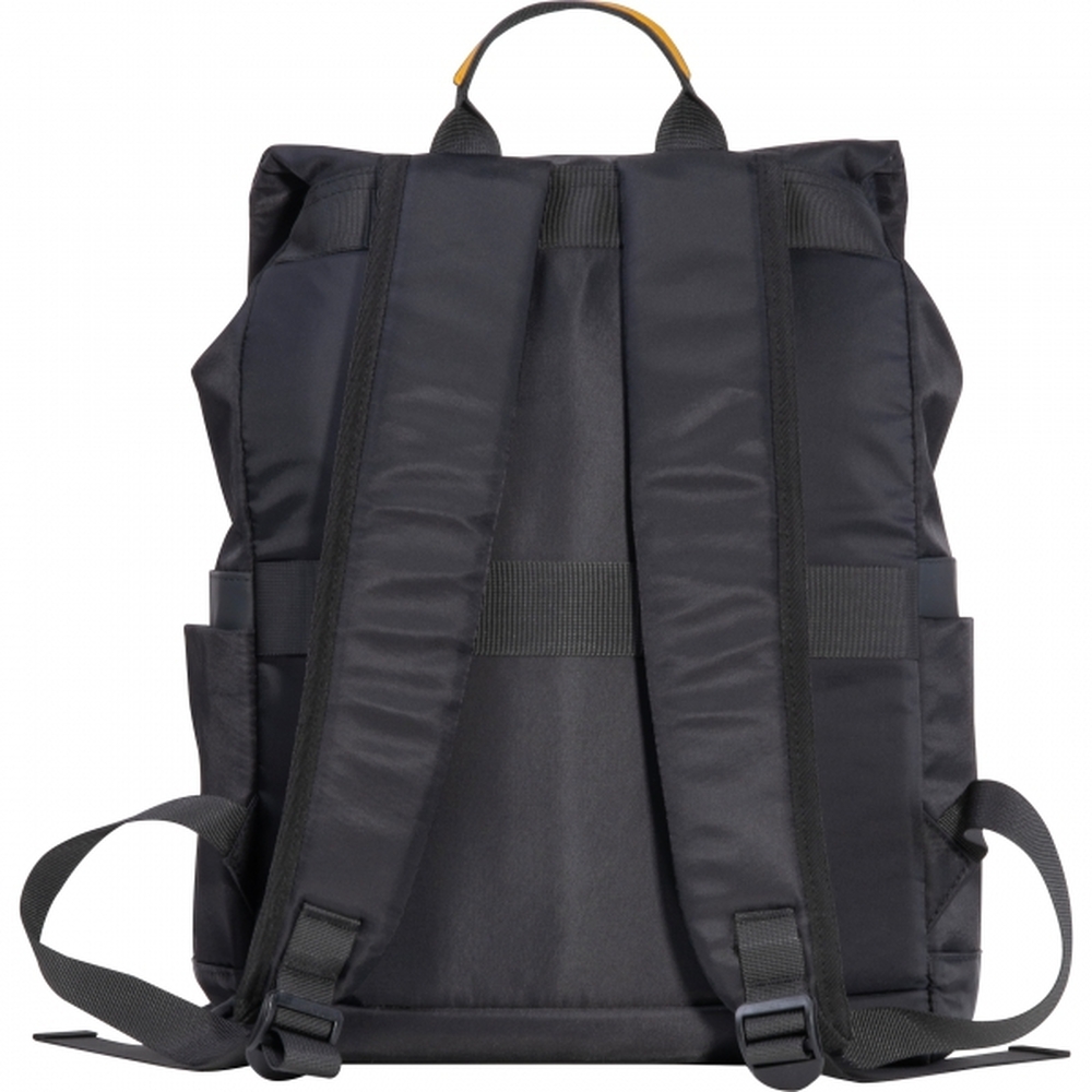 Wysokiej jakości plecak na laptopa wykonany z poliestru z pojemną komorą główną i przegrodą na laptopa. Dodatkowo, plecak posiada wodoodporne zamki błyskawiczne, pasek do noszenia na walizce, wyściełane szelki i dwie boczne kieszenie.