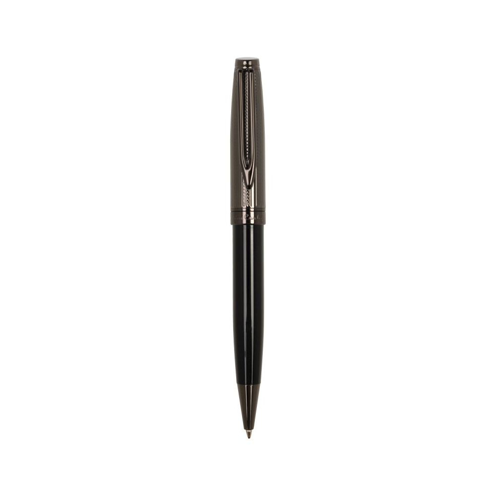 Luksusowy zestaw przyborów do pisania Pierre Cardin o eleganckim designie, zawierający długopis i pióro wieczne. Korpusy obu przyborów wykonane są w błyszczącym czarnym kolorze z górnymi częściami w odcieniu gunmetal. Długopis posiada mechanizm obrotowy i wysokiej jakości wkład w kolorze niebieskim z końcówką 1 mm, natomiast pióro wieczne wyposażone jest w standardowy niebieski nabój atramentowy, zapewniający płynne i precyzyjne pisanie. Całość zapakowana jest w eleganckie pudełko upominkowe z certyfikatem autentyczności.