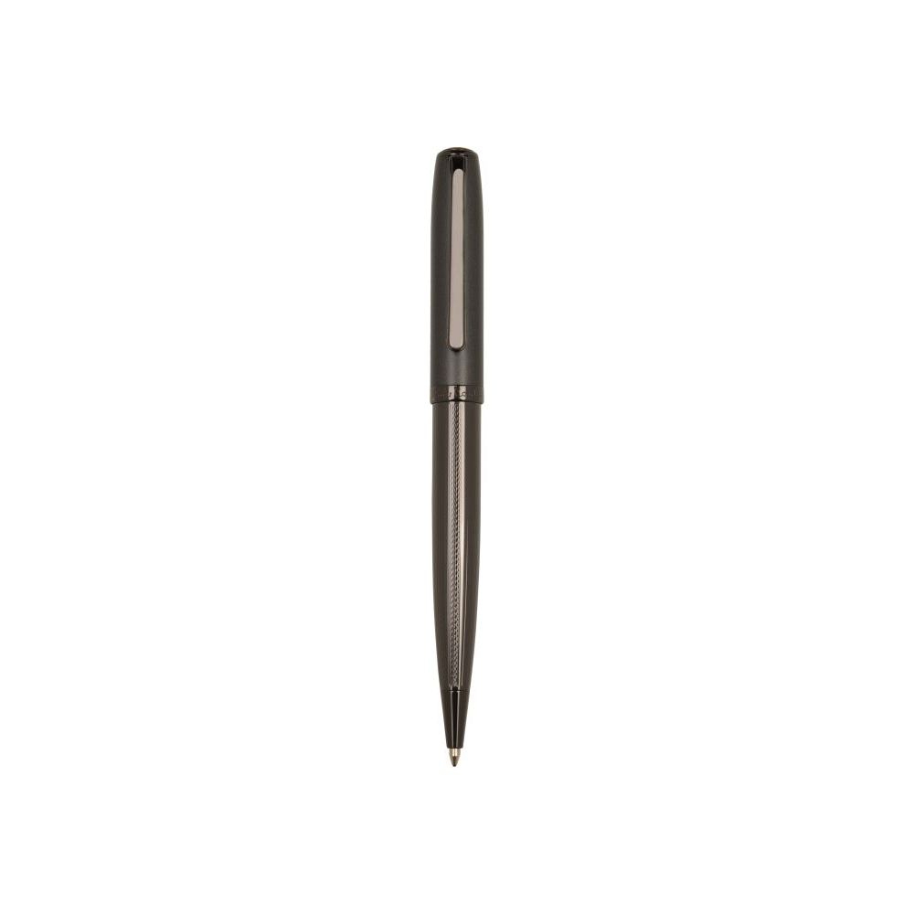 Luksusowy zestaw Pierre Cardin o eleganckim i nowoczesnym designie, zawierający długopis i pióro kulkowe. Korpusy obu przyborów wykonane są w odcieniu gunmetal z ciemnoszarymi górnymi częściami. Długopis wyposażony jest w wysokiej jakości wkład w kolorze niebieskim z końcówką 1 mm, a pióro kulkowe posiada niemiecki wkład Schmidt w kolorze niebieskim z końcówką 0,6 mm. Oba przybory do pisania zawierają również zapasowy czarny wkład. Całość zapakowana jest w eleganckie pudełko upominkowe z certyfikatem autentyczności.
