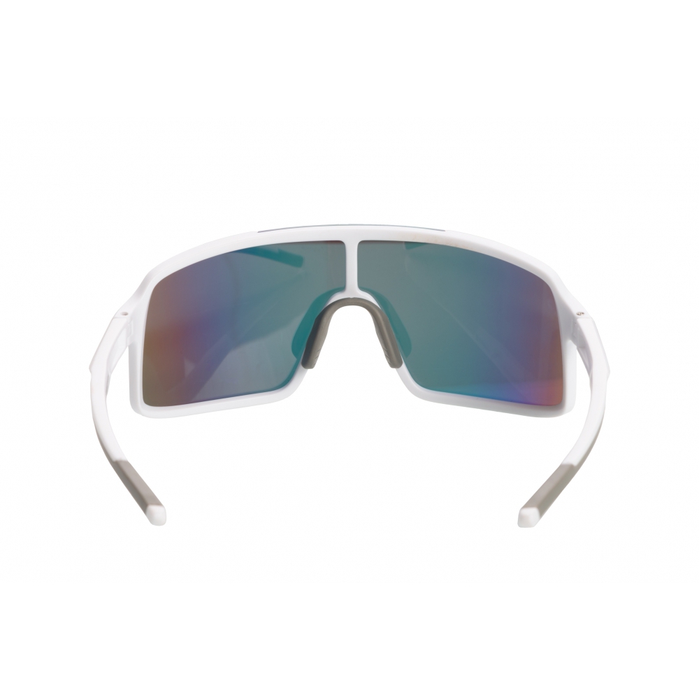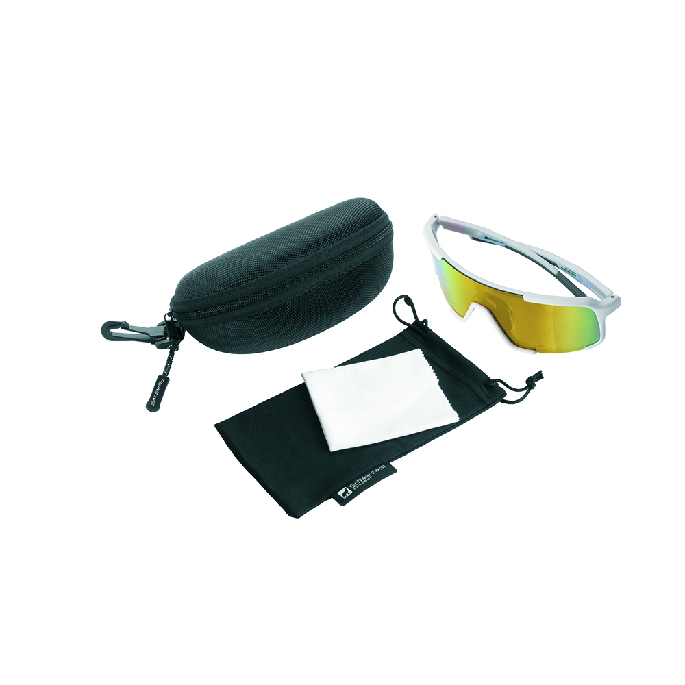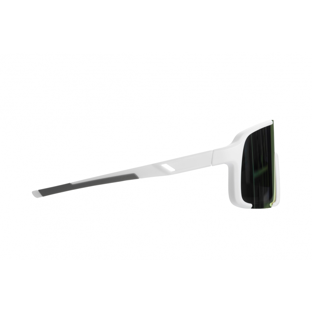 Polaryzowane okulary sportowe z kolorowymi soczewkami, zapewniające ochronę UV 400. Oprawki okularów wykonane są w białym kolorze z szarymi detalami. Te sportowe okulary z polaryzowanymi soczewkami eliminują uciążliwe odblaski i poprawiają widoczność szczegółów w terenie. Efektem jest mniejsze zmęczenie oczu i bardziej naturalne postrzeganie kolorów nawet w silnym słońcu. Idealne do biegania, jazdy na rowerze, sportów wodnych oraz codziennego użytkowania. Okulary dostarczane są w czarnym woreczku z mikrofibry (9,1 × 17,6 cm) oraz praktycznym twardym etui na zamek (17,5 × 7,5 × 6,5 cm). W zestawie znajduje się także biała ściereczka z mikrofibry (18 × 18 cm) odpowiednia do sublimacji.