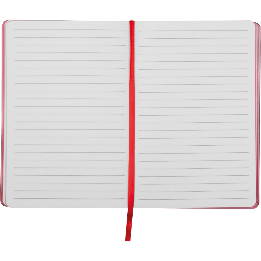 Notes z okładką z PU z recyklingu, 160 stronami w linie, wykonanymi z papieru z recyklingu, z kolorowymi krawędziami i materiałową zakładką.