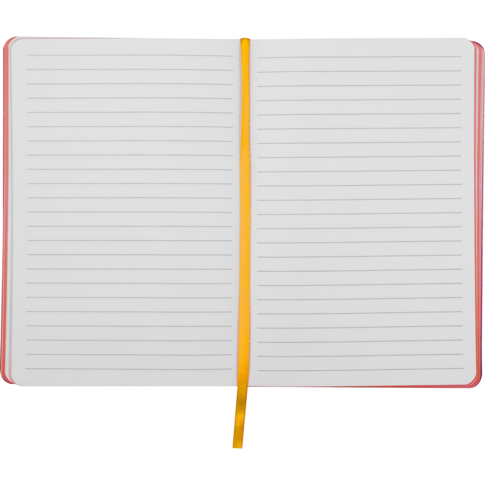 Notes z okładką z PU z recyklingu, 160 stronami w linie, wykonanymi z papieru z recyklingu, z kolorowymi krawędziami i materiałową zakładką.
