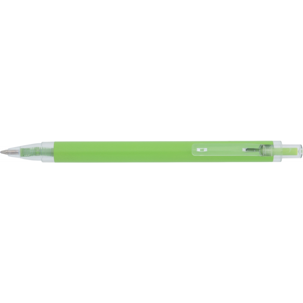 Długopis wykonany z aluminium z recyklingu i RPET, z przezroczystym klipsem i niebieskim wkładem.