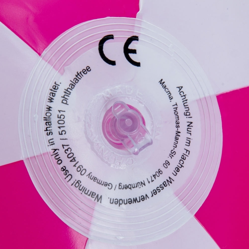 Dwukolorowa dmuchana piłka plażowa, wykonana z PVC, nie zawiera ftalanów. Długość panelu: 40 cm (średnica ~26 cm).