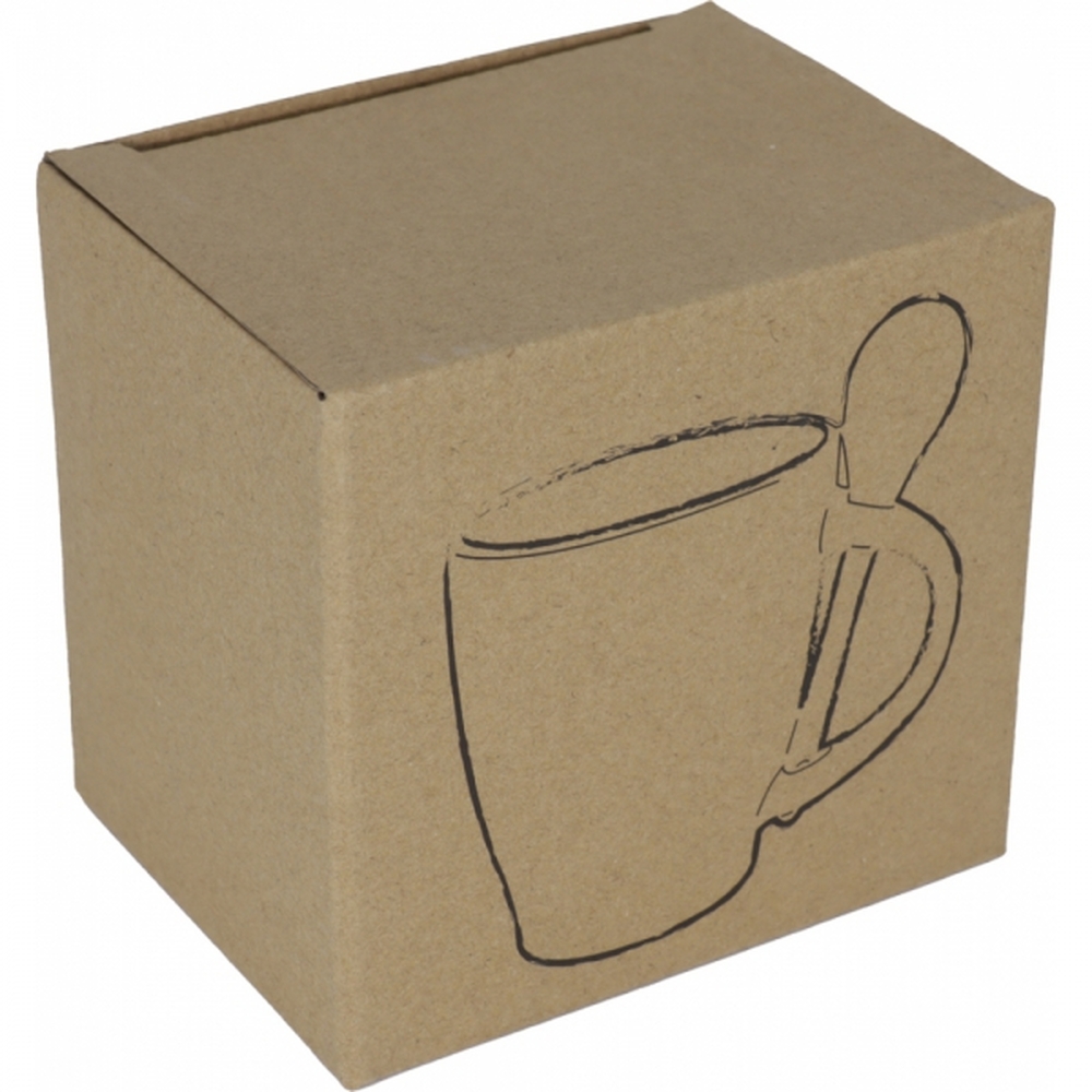 Kubek ceramiczny o pojemności 250 ml, sprzedawany w zestawie z łyżeczką w kolorze pasującym do wnętrza kubka.