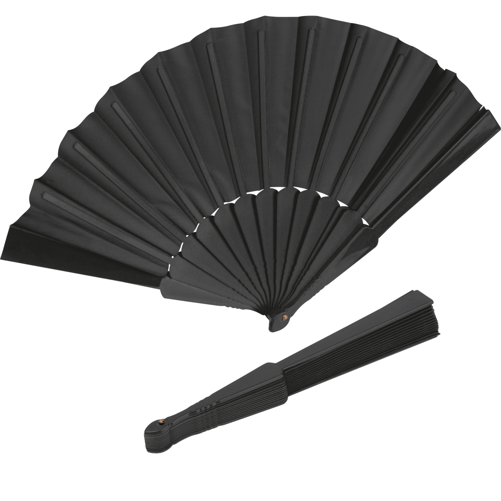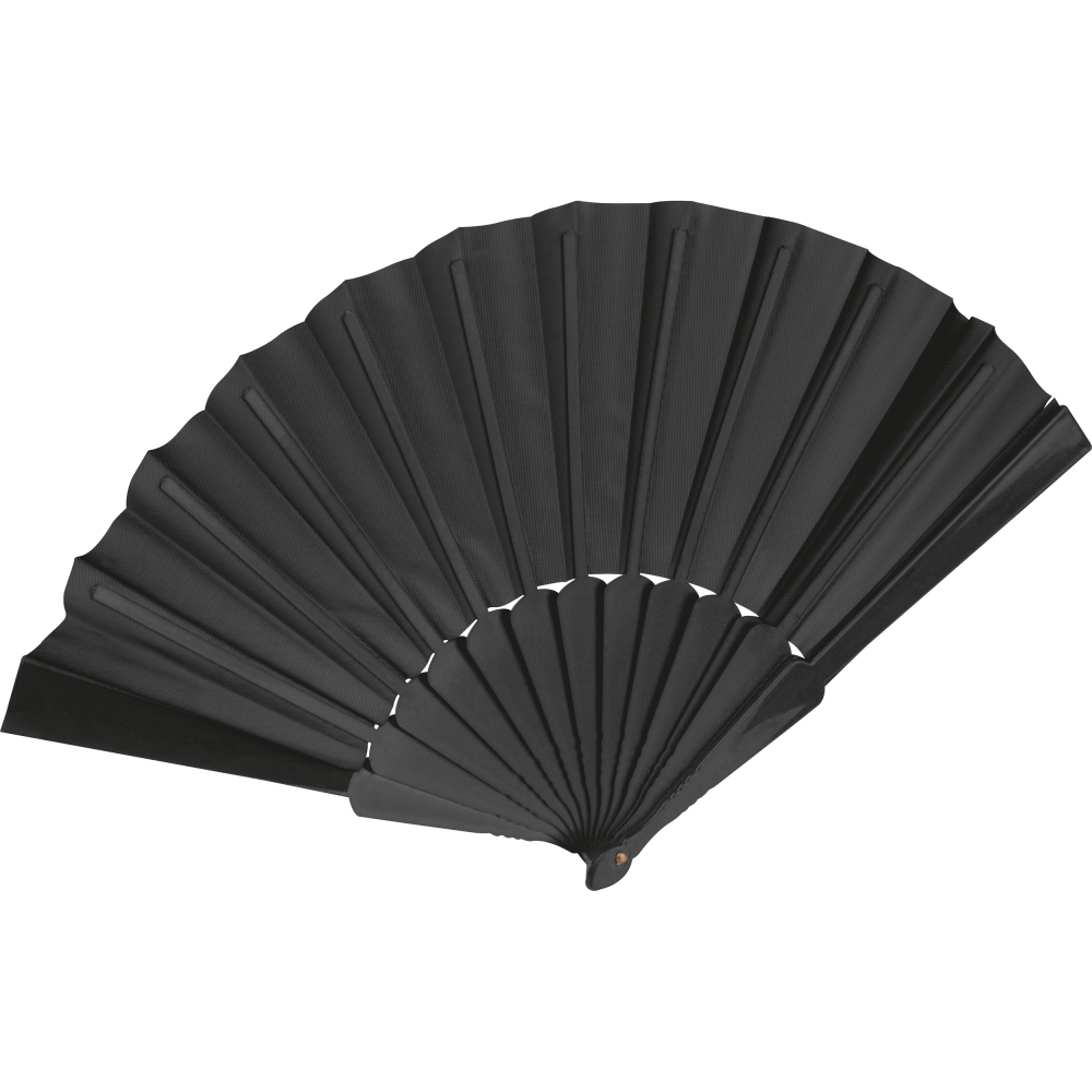 Lekki, poliestrowy wachlarz z plastikową rączką.