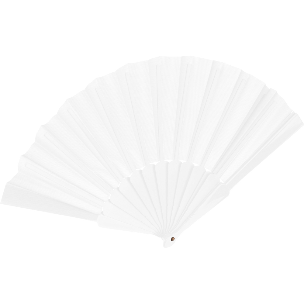 Lekki, poliestrowy wachlarz z plastikową rączką.