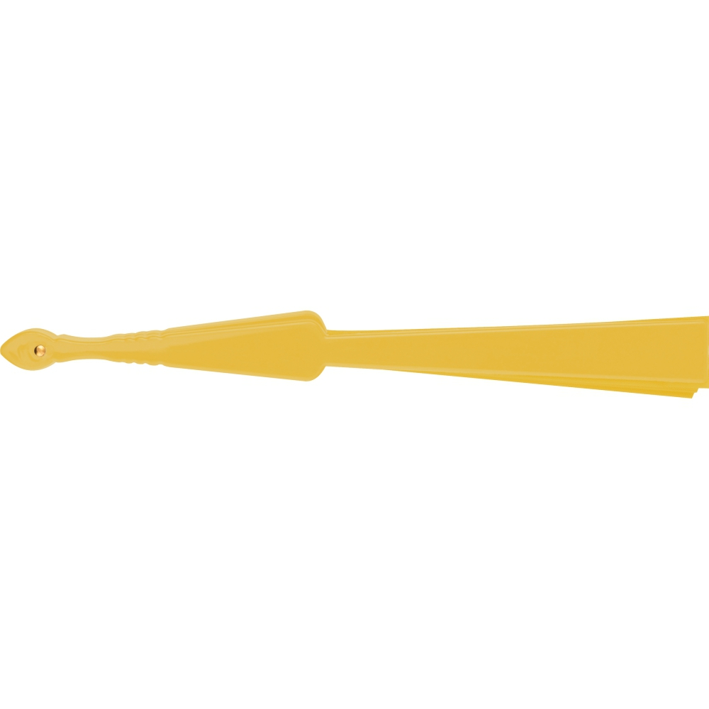 Lekki, poliestrowy wachlarz z plastikową rączką.