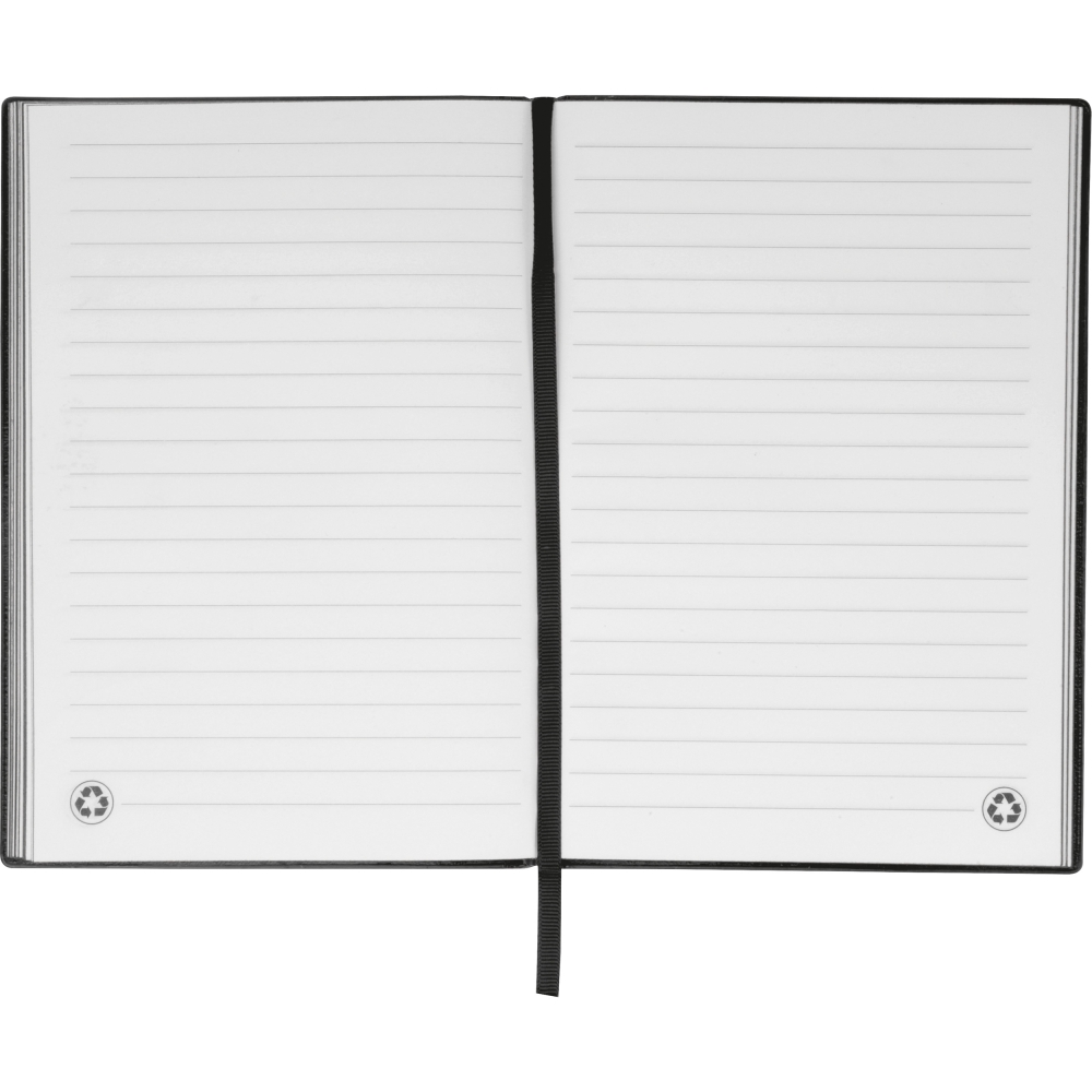 Notes o formacie A5, z 264 stronami w linię, wykonanymi z papieru z recyklingu oraz wytrzymałą okładką z PU.