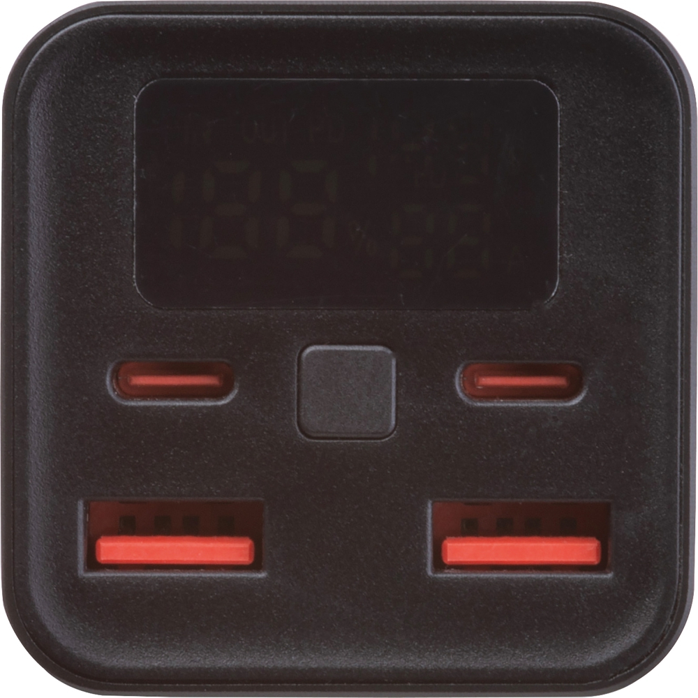 Power bank o pojemności 20 000 mAh i łącznej mocy wyjściowej 70 W. Wyposażony w czytelny wyświetlacz LCD oraz miękką, gumowaną powłokę. W zestawie znajduje się kabel USB – USB-C.