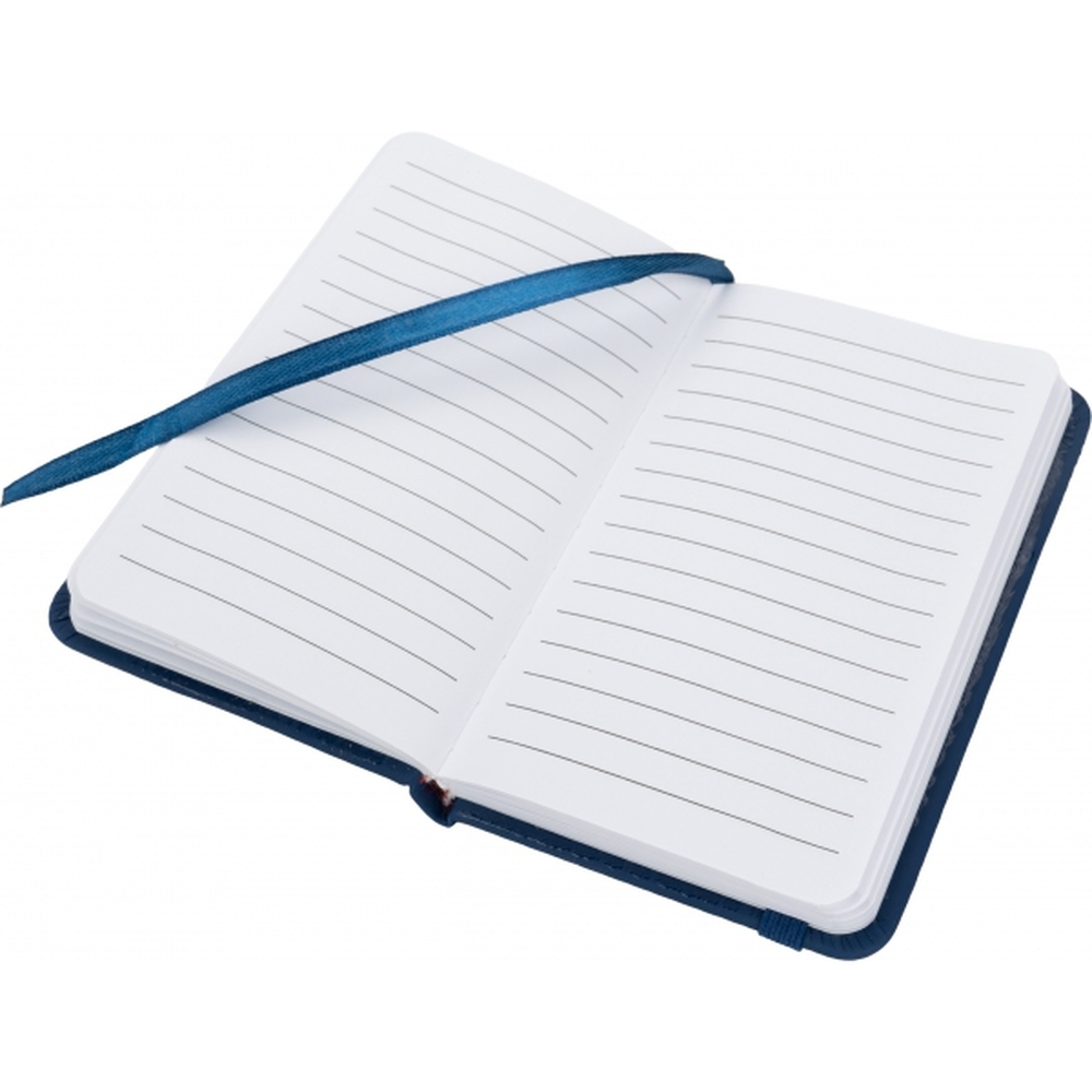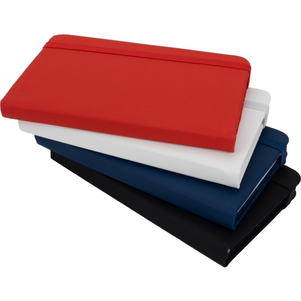 Notes (160 stron) w linie, w twardej oprawie z PU. Posiada tasiemkową zakładkę oraz gumkę umożliwiającą zamknięcie.