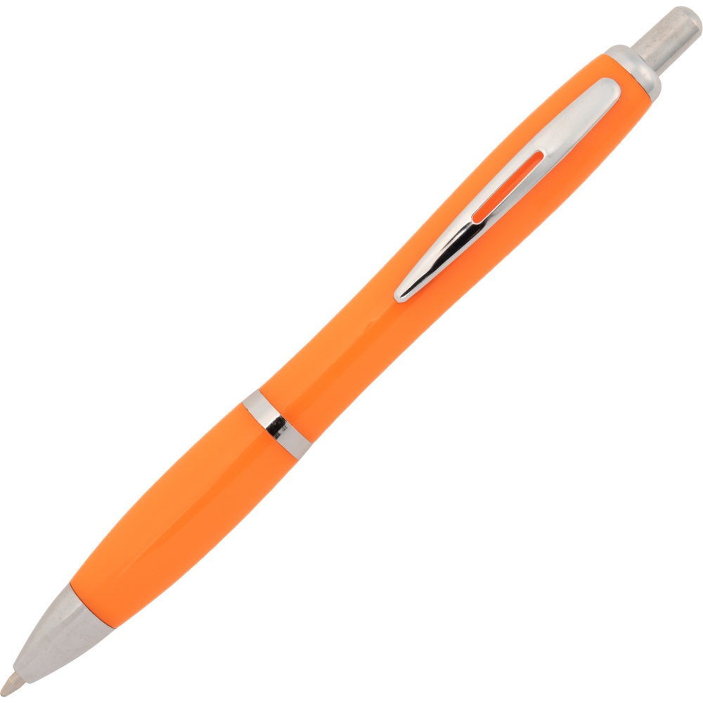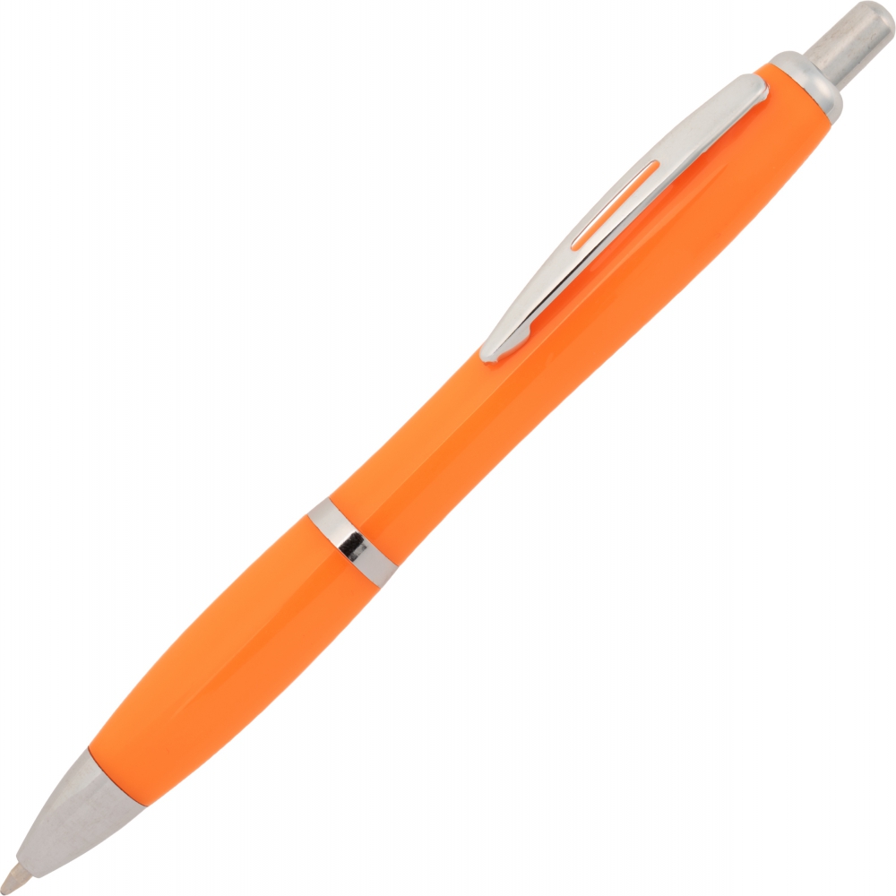 Klasyczny długopis plastikowy z metalowym klipsem i dużym, niebieskim wkładem.