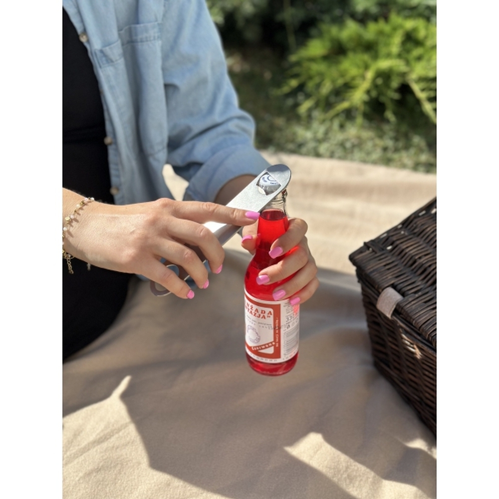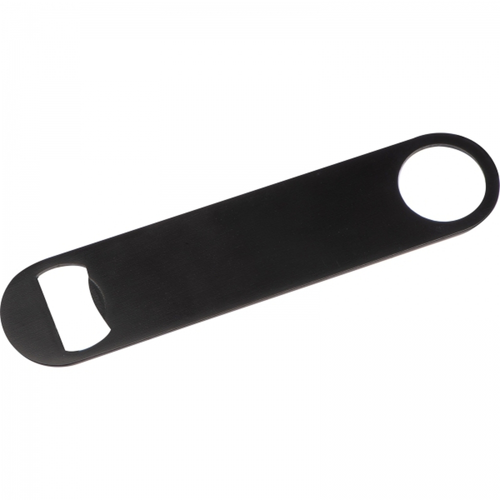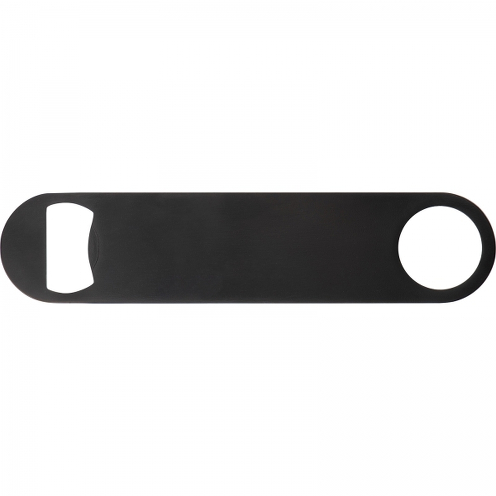 Duży otwieracz do butelek wykonany ze stali nierdzewnej.