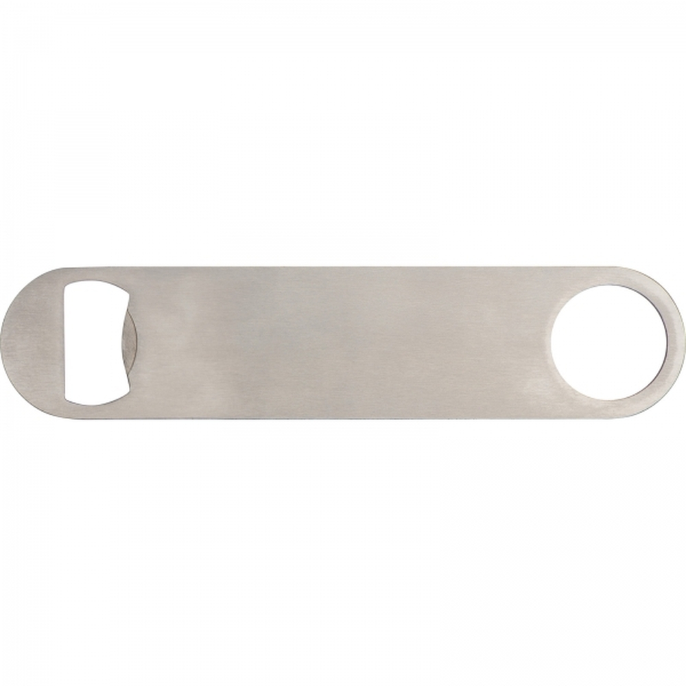 Duży otwieracz do butelek wykonany ze stali nierdzewnej.