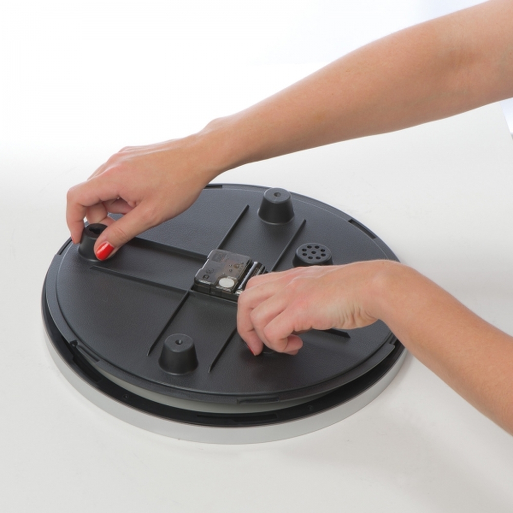 Elegancki zegar w wytrzymałej obudowie. Kontrastująca tarcza i duże cyfry. Dodatkowy wskaźnik temperatury i wilgotności powietrza. Brak baterii w zestawie.