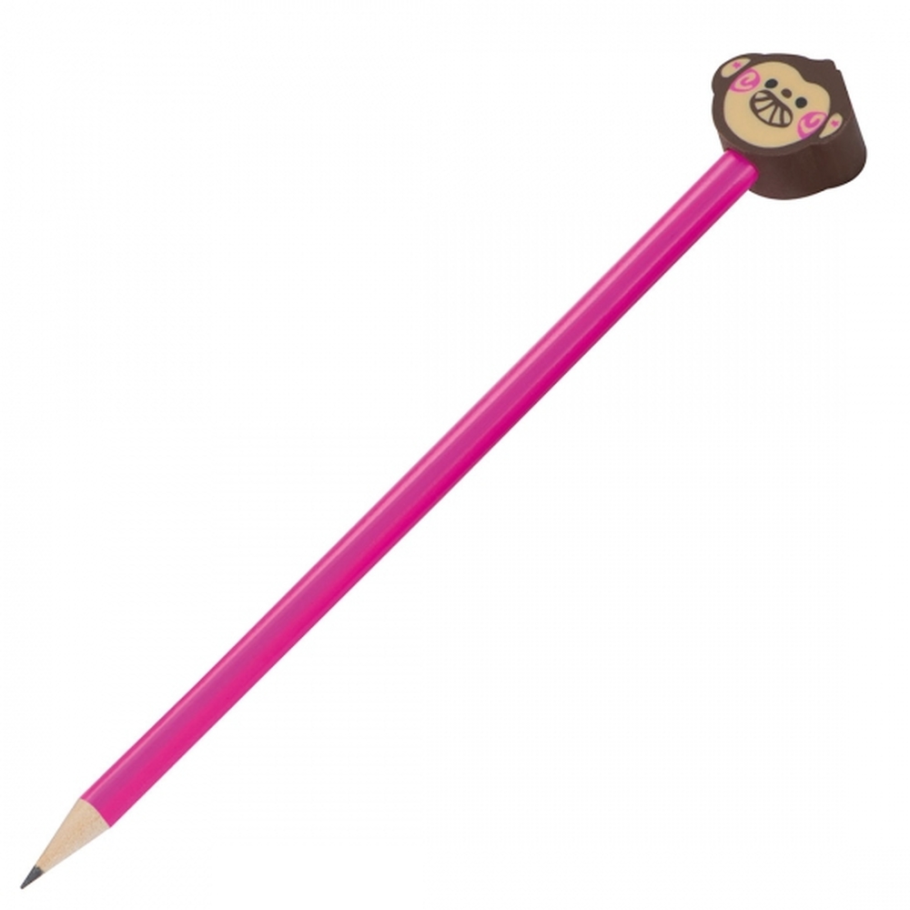 Drewniany ołówek z gumką do ścierania. Ołówek nie jest zatemperowany.