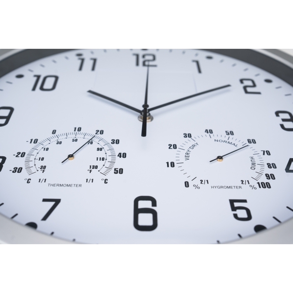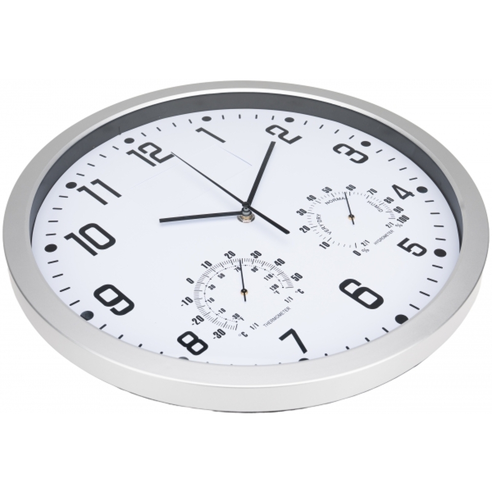 Zegary firmy CrisMa cechuje wysoka wytrzymałość i elegancki wygląd. Ten model, oprócz wskazywania godzin, pokazuje temperaturę oraz wilgotność powietrza. Estetyczna i wytrzymała obudowa, cichy mechanizm zasilany wyłącznie jedną bateria AA. Brak baterii w zestawie.