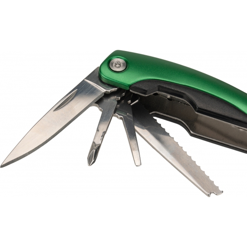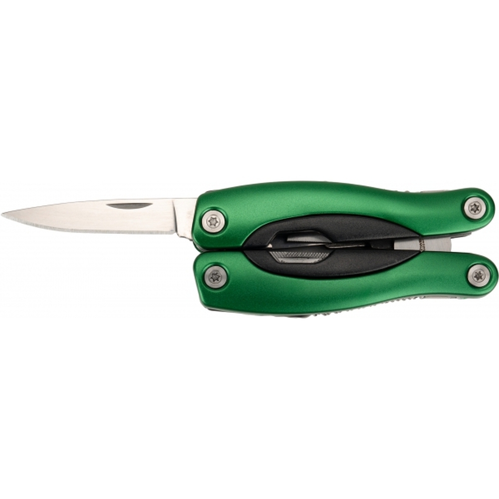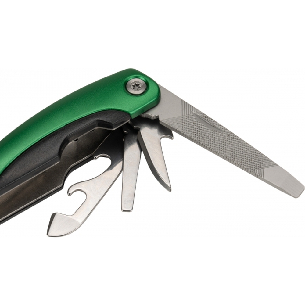 Multitool Armador posiada aż 15 narzędzi, między innymi: kombinerki, pilnik, śrubokręt płaski i Philips, noż, piłke, otwieracz do butelek i konserw. Narzędzia zostały wykonane ze stali nierdzewnej. Do produktu dołączony jest pokrowiec z neoprenu.