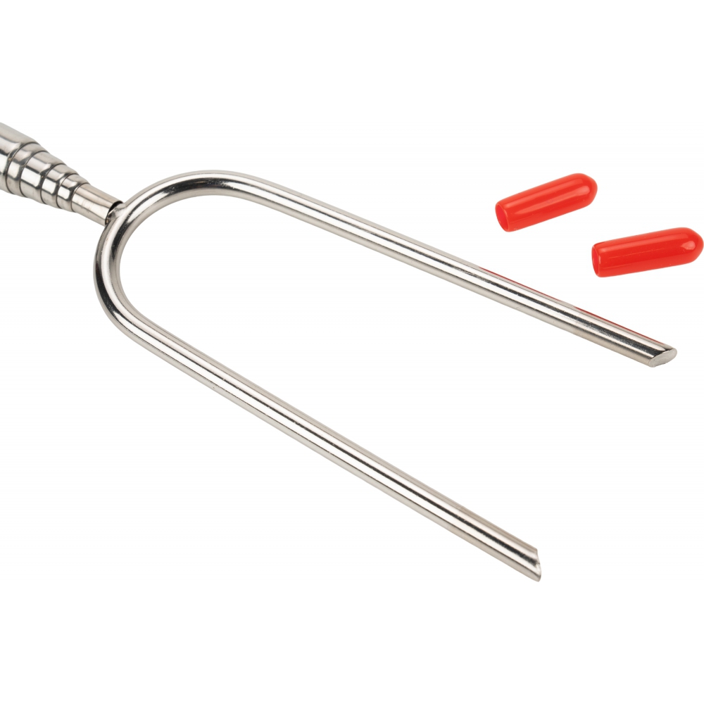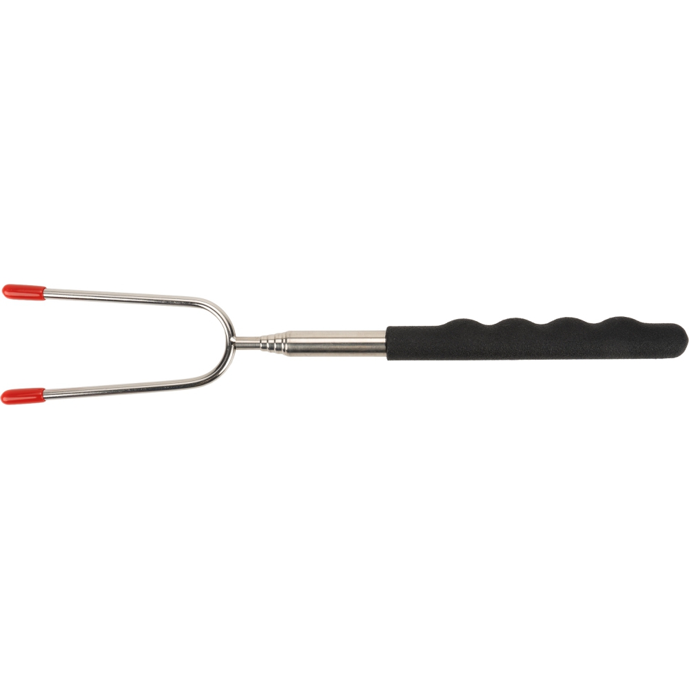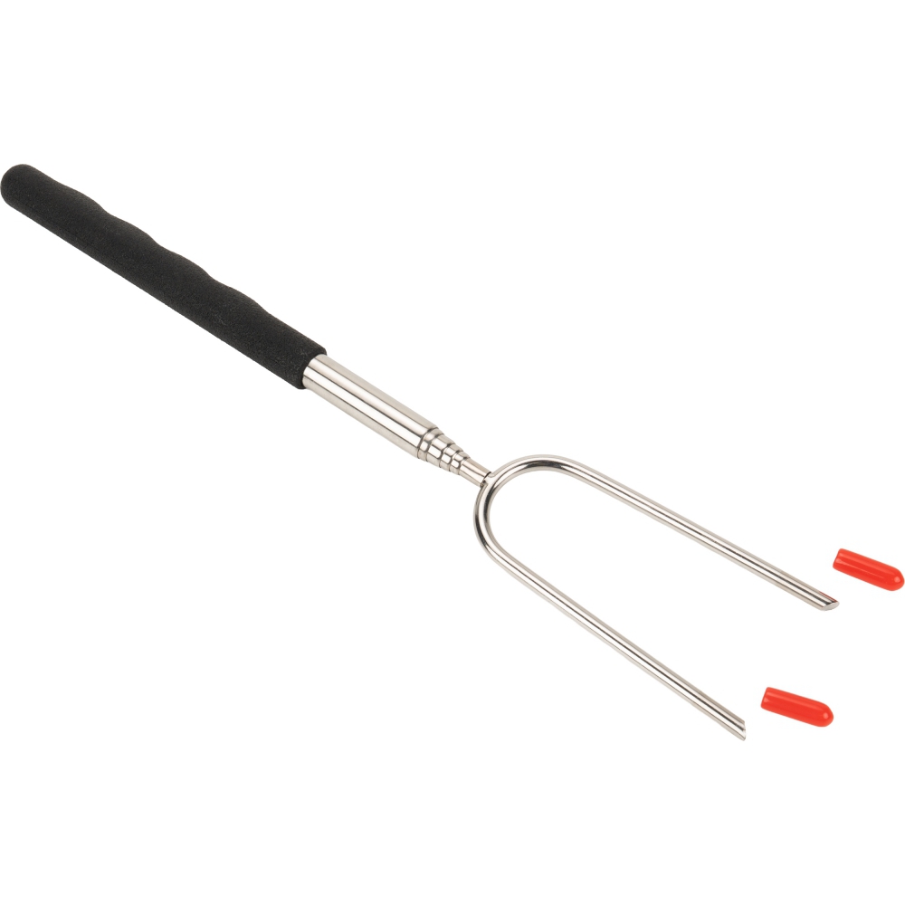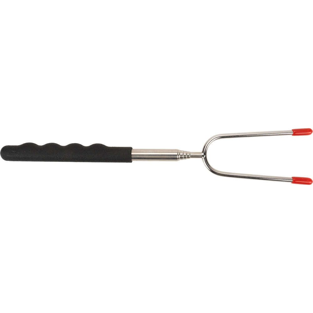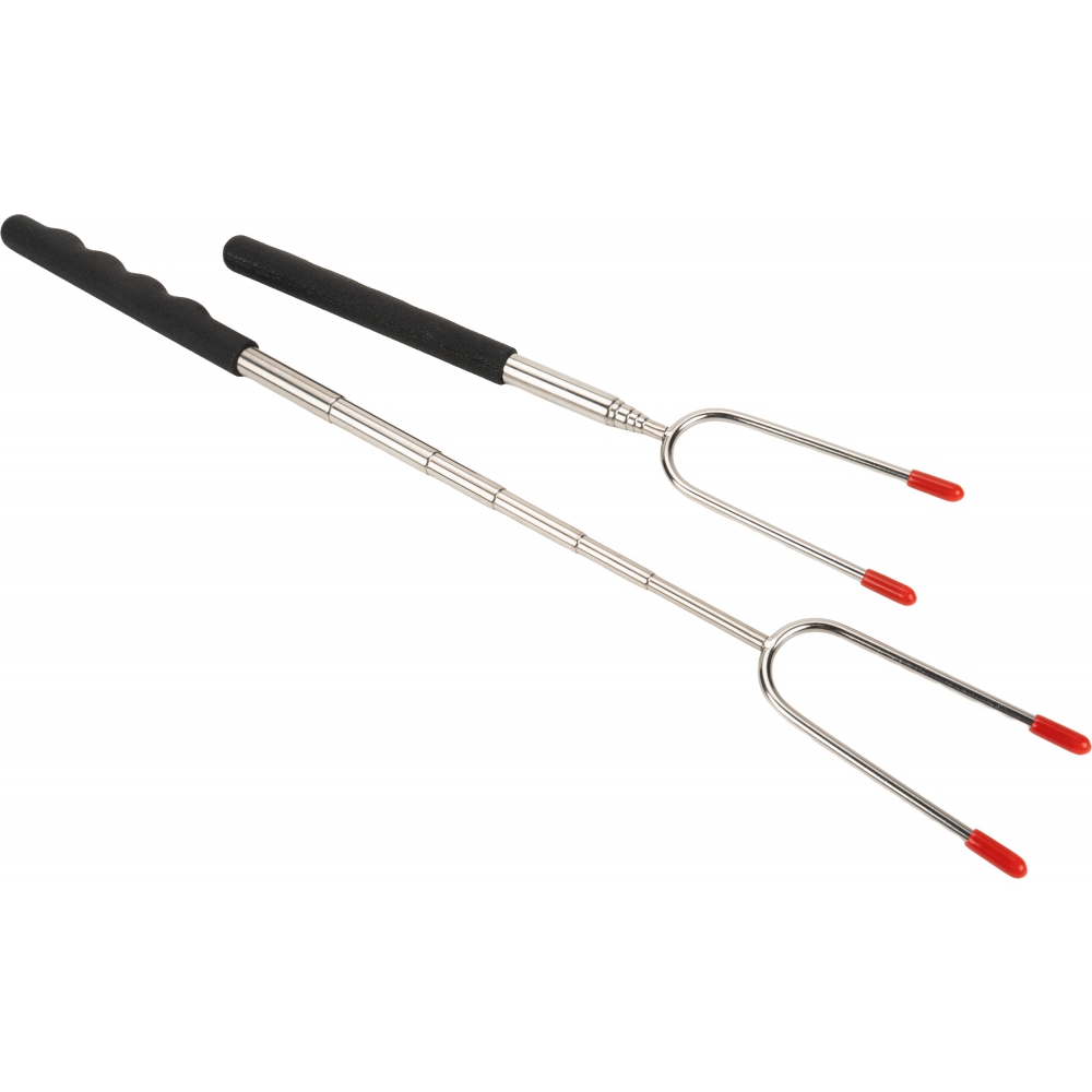Praktyczny zestaw dwóch teleskpowych kijków do pieczenia kiełbasy, idealny na ognisko. Zapakowane w nylonowy pokrowiec ze ściągaczem - 29 x 10 x 1 cm. Materiał: stal nierdzewna, rękojeść PVC.